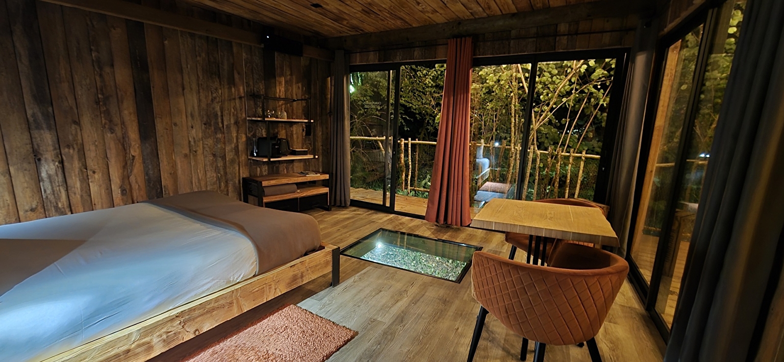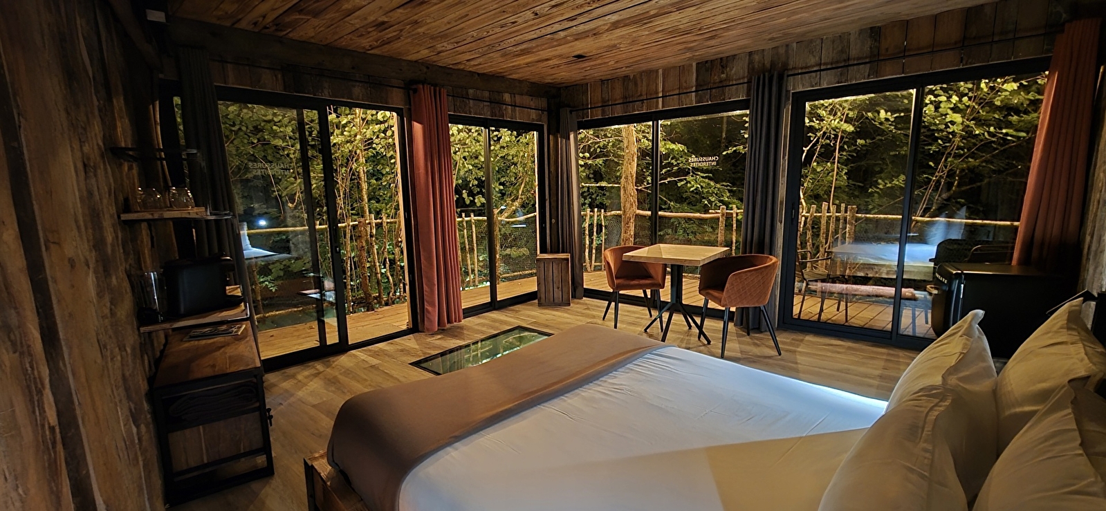 Our lodges, designed to blend harmoniously into their natural surroundings, combine elegance, modernity and authenticity. Each lodge has been carefully designed to offer a warm and refined space, with noble materials that evoke the spirit of the surrounding nature.