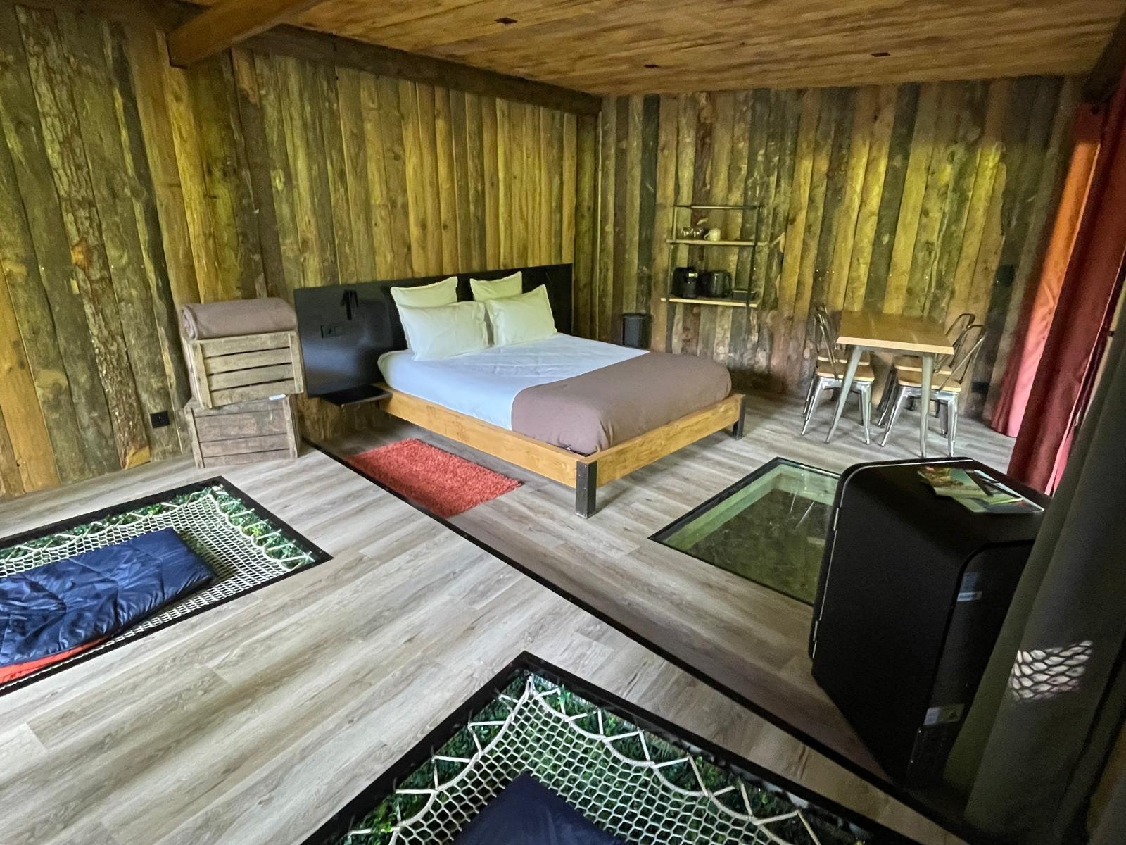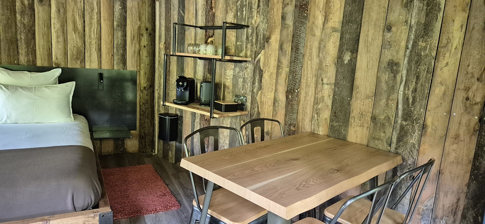 Our lodges, designed to blend harmoniously into their natural surroundings, combine elegance, modernity and authenticity. Each lodge has been carefully designed to offer a warm and refined space, with noble materials that evoke the spirit of the surrounding nature.