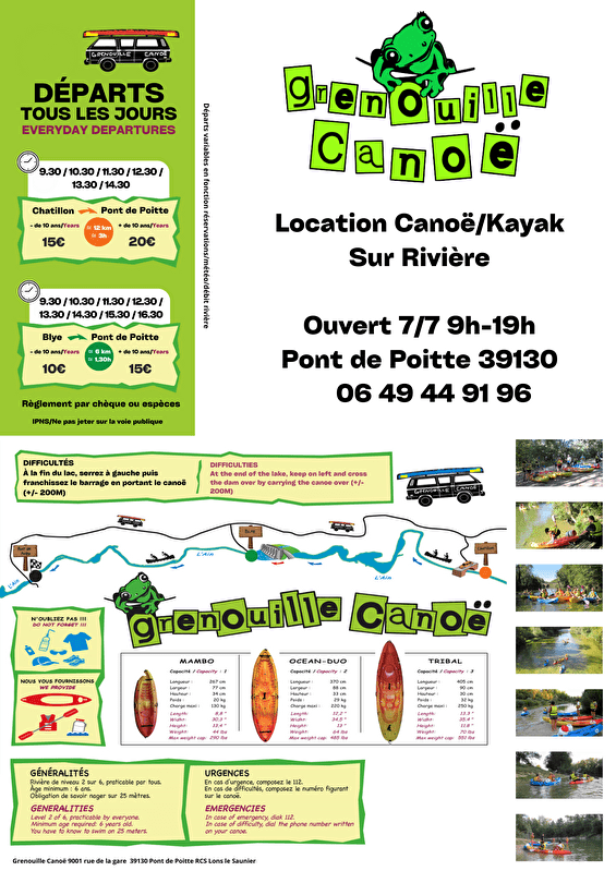 GRENOUILLE CANOE at Pont de Poitte.