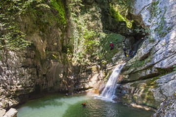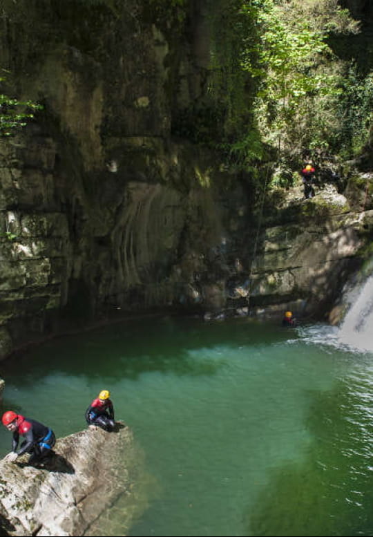 Geared up with a neoprene wetsuit, helmet and harness, you're ready for the adventure! Your river walk soon turns into a sporting challenge with a succession of slides, waterfalls, jumps and abseiling descents.