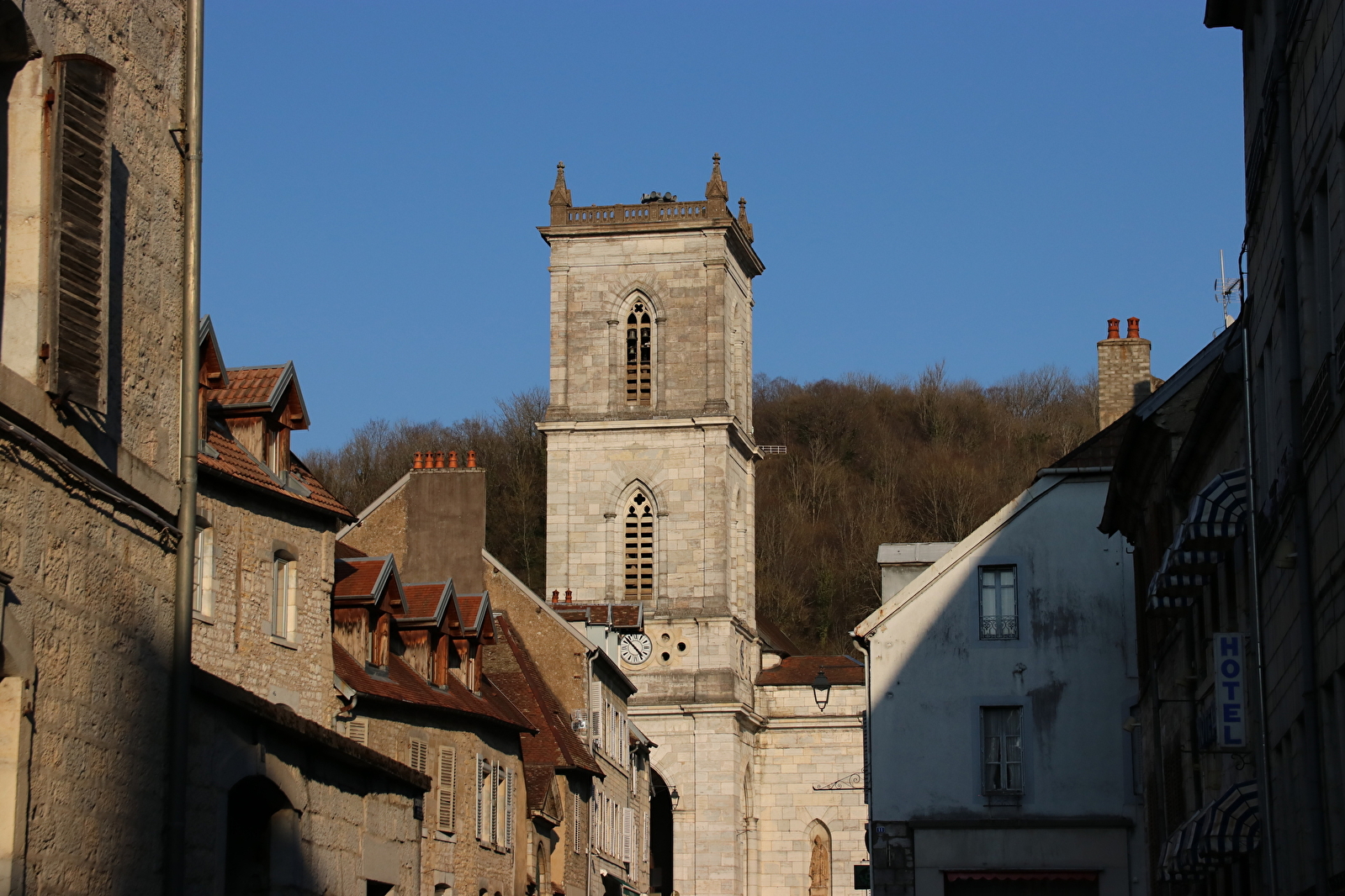 This neo-Gothic church, built in the 17th century by the architects Perrin and Roussel, is a must-see part of Baum's heritage. Its 38-metre high porch bell tower is very impressive, but also very special... After a fire caused by fireworks on 14 July 1920, the dome burst into flames and was never replaced.