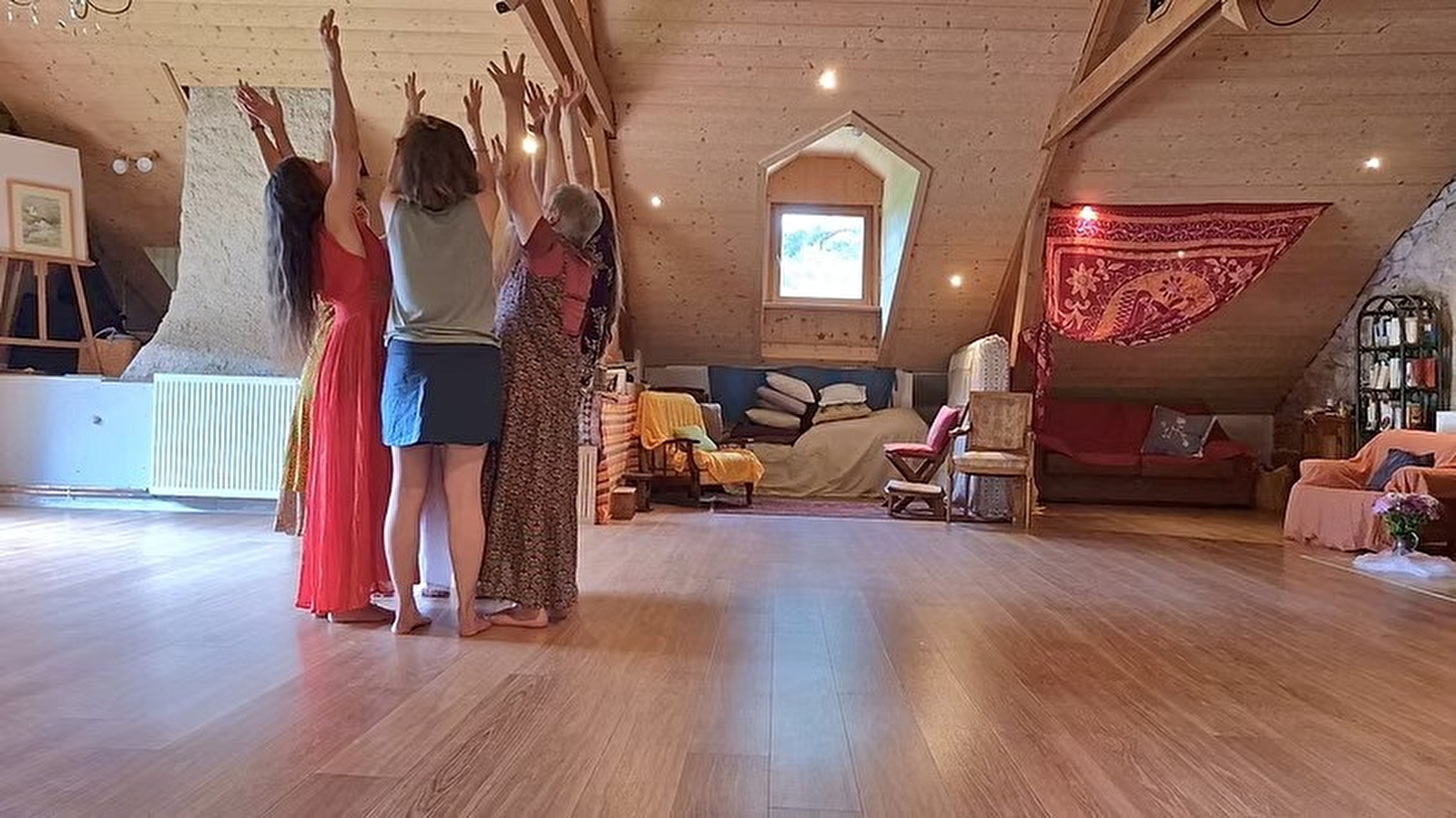 2/ Movement: without music, then with music, this spontaneous movement is invited to develop: it is through awareness with every fibre of our body of what underpins every living being (the breath, the ground, the light, etc.) that our mind agrees to "hand over the reins" to the body.