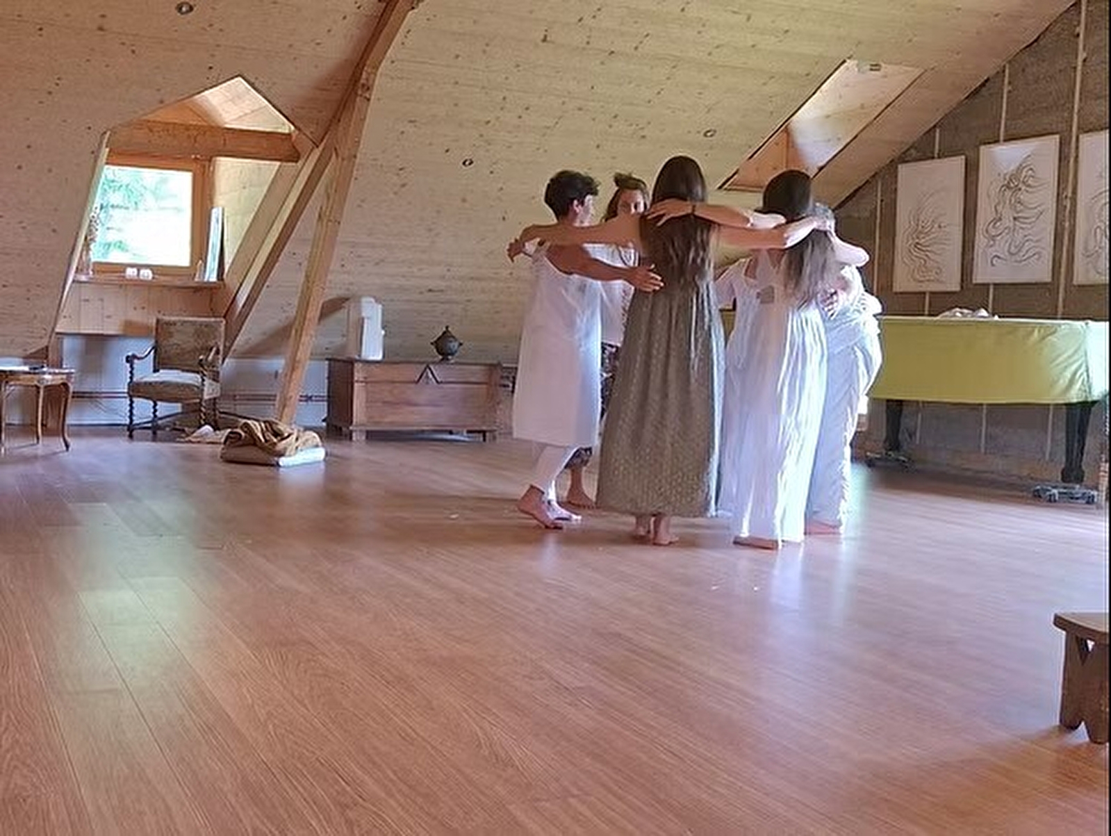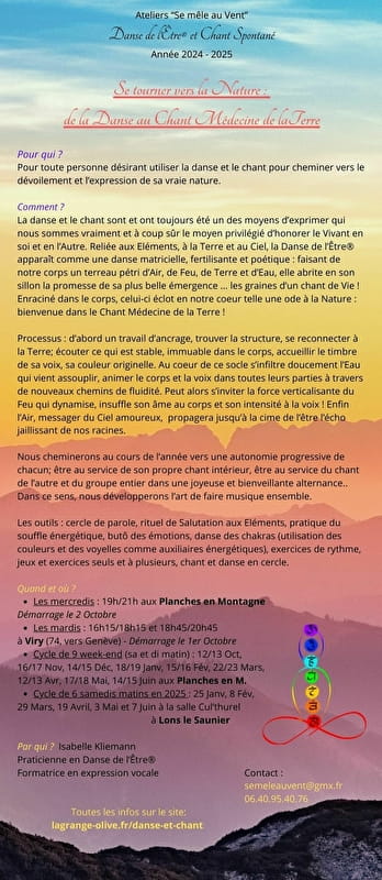 3/ Voice: born of increasingly free movement, attentive to the needs of the body, the voice can naturally open up in turn, into unexpected and accepted sounds (!), then into improvised melodies.