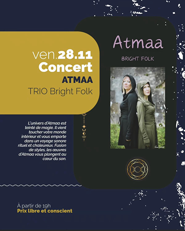 sometimes verging on trance. A fusion of styles and a powerful expression of our creative and spiritual side, Atmaa's work plunges you into the heart of sound. It is the intimate vibration of the soul that expresses itself through the elvish language and the intuitive language. For Atmaa, medical music is resonance.