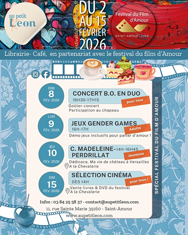 For your gourmet interludes, the bookshop café au petit Léon in Saint-Amour, welcomes you throughout the Love Film Festival.