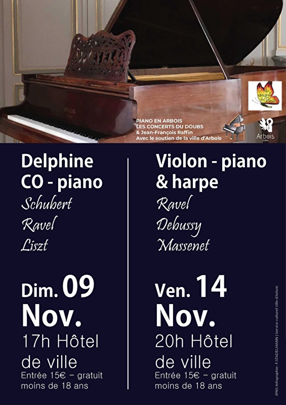 Charlotte on violin and Nathan Saluste-Bridoux on piano, Chloé Ducray on harp: