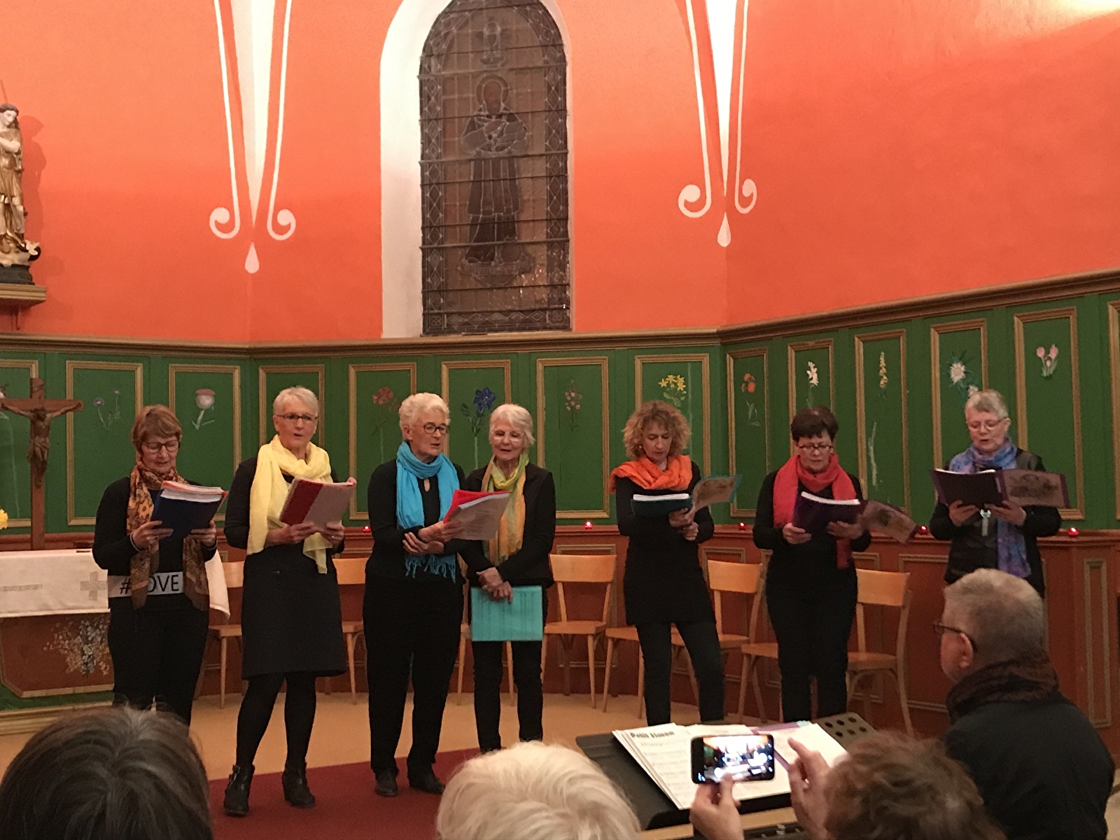 Marc Pellegrini, the choirmaster, accompanies the merry band with his synthesiser.