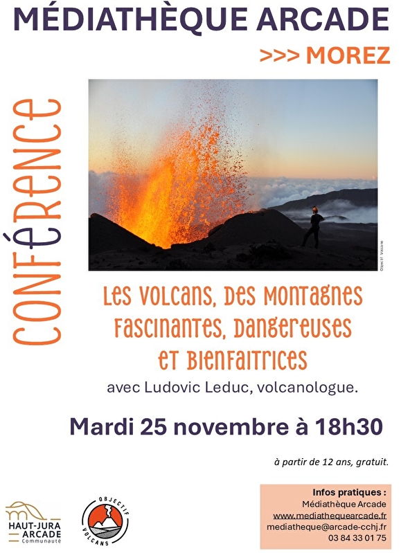 The Morez media library is hosting a talk entitled "Volcanoes: fascinating, dangerous and beneficial mountains" by Ludovic Leduc, volcanologist.