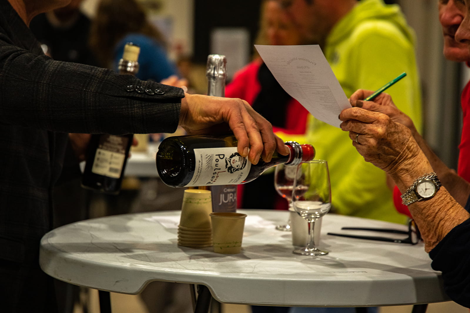 Jura wine tasting with the Fruitière Vinicole d'Arbois. Games for children and tasting of home-made syrups.