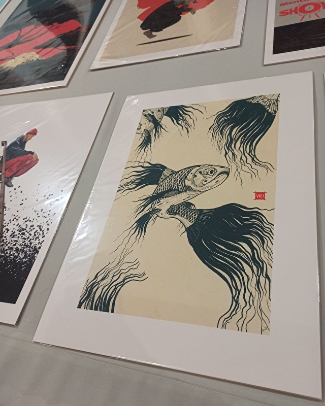 The exhibition mainly features works in intaglio ink. Usually intended for printing, this ink is here applied directly by hand to paper or canvas. Fluid and almost alive, it allows the artist to 'draw' with great freedom, sculpting the material with various tools to bring out textures, reliefs and volumes.
