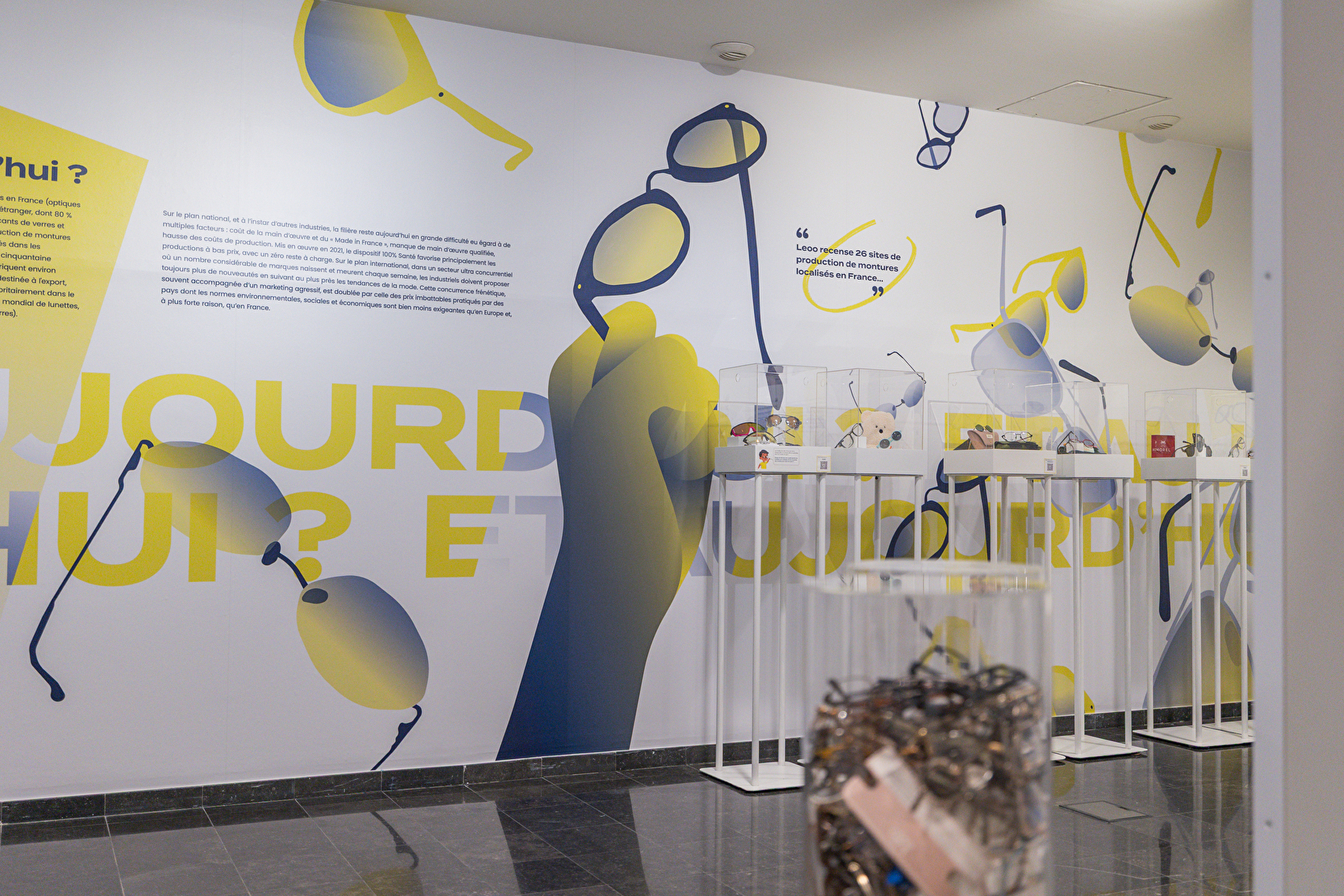 The exhibition was designed with the support of the DRAC Bourgogne Franche-Comté and in partnership with Applications Lunetières, Gouverneur Audigier, Julbo, Manufacture Andy Wolf Jura, Morel, Naja Manufacture, Oxibis Group, Plein les Mirettes/PLM, Manufacture Thierry S.A., Vuillet-Vega and Visio Lunetterie.