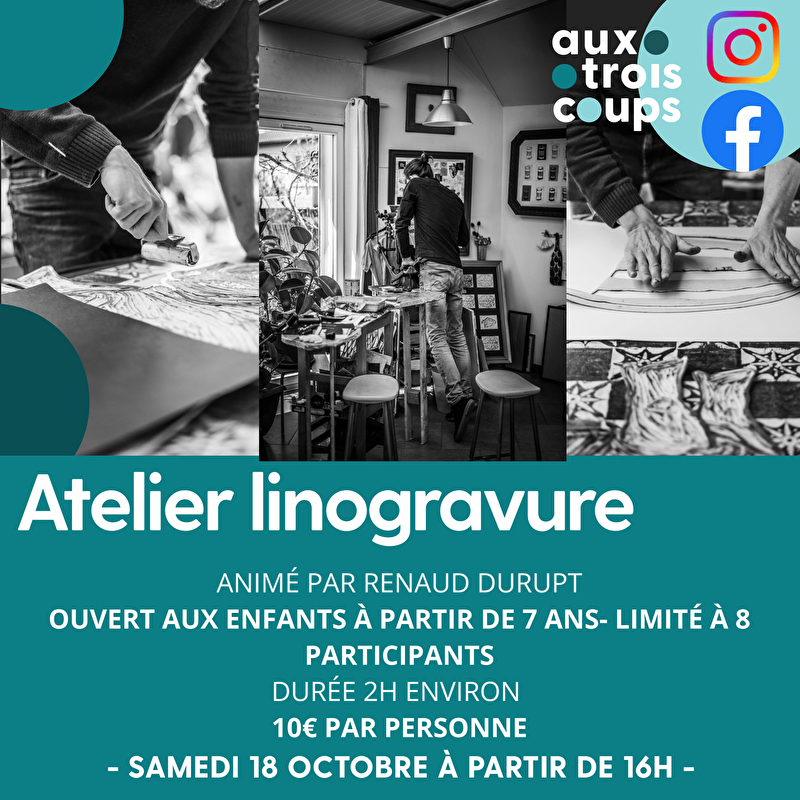 Linocutting is an artistic printing technique in which a motif is engraved in a linoleum plate before being inked and printed on paper. It's a fun and creative way to let your imagination run wild, while discovering a unique craft.