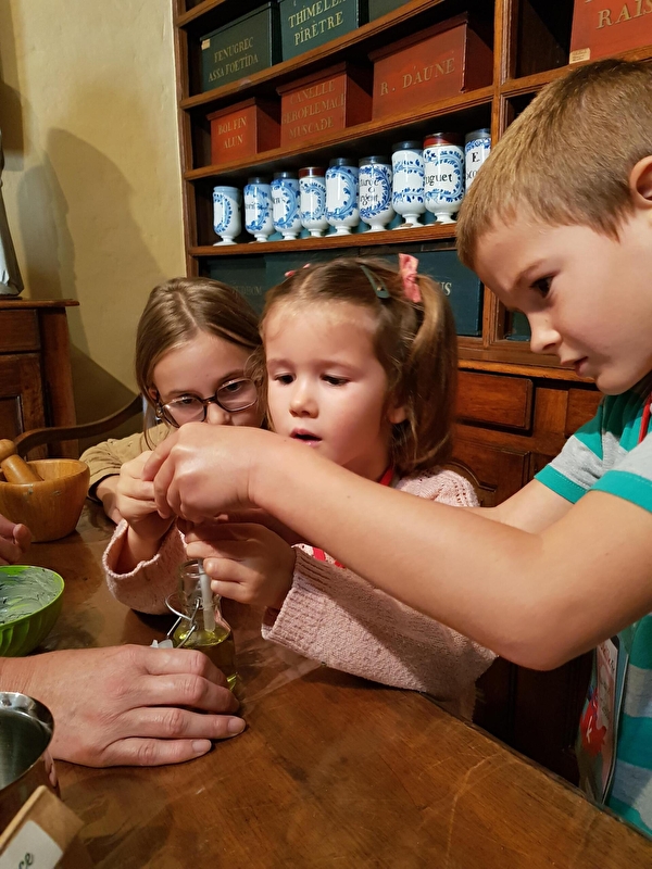 How did people treat themselves in centuries gone by? What would you find in an apothecary's shop? Boxes and jars still contain a host of sometimes unexpected substances, including plants such as nettle and sage, as well as precious stones, bear fat and deer horn... a surprising journey where lady witch is never far away! The apothecary will be dressed up for Halloween. Come in costume. One adult max per child or family. Reservations required.