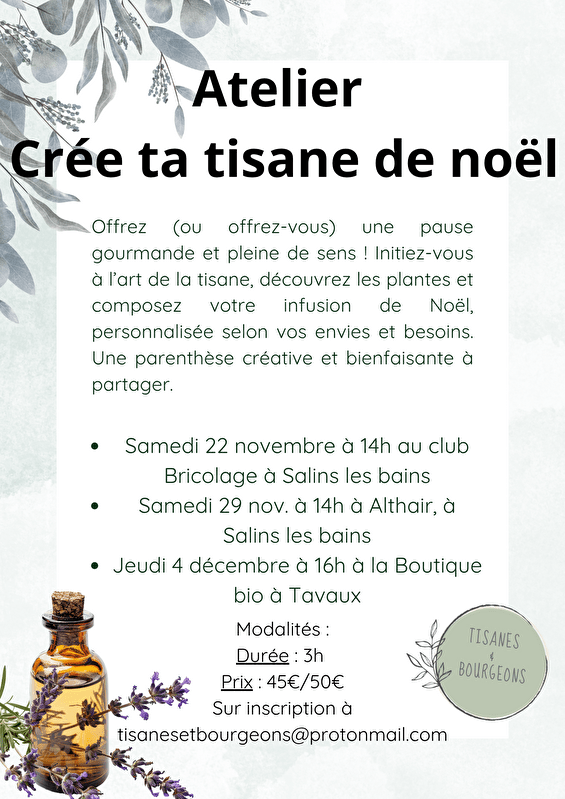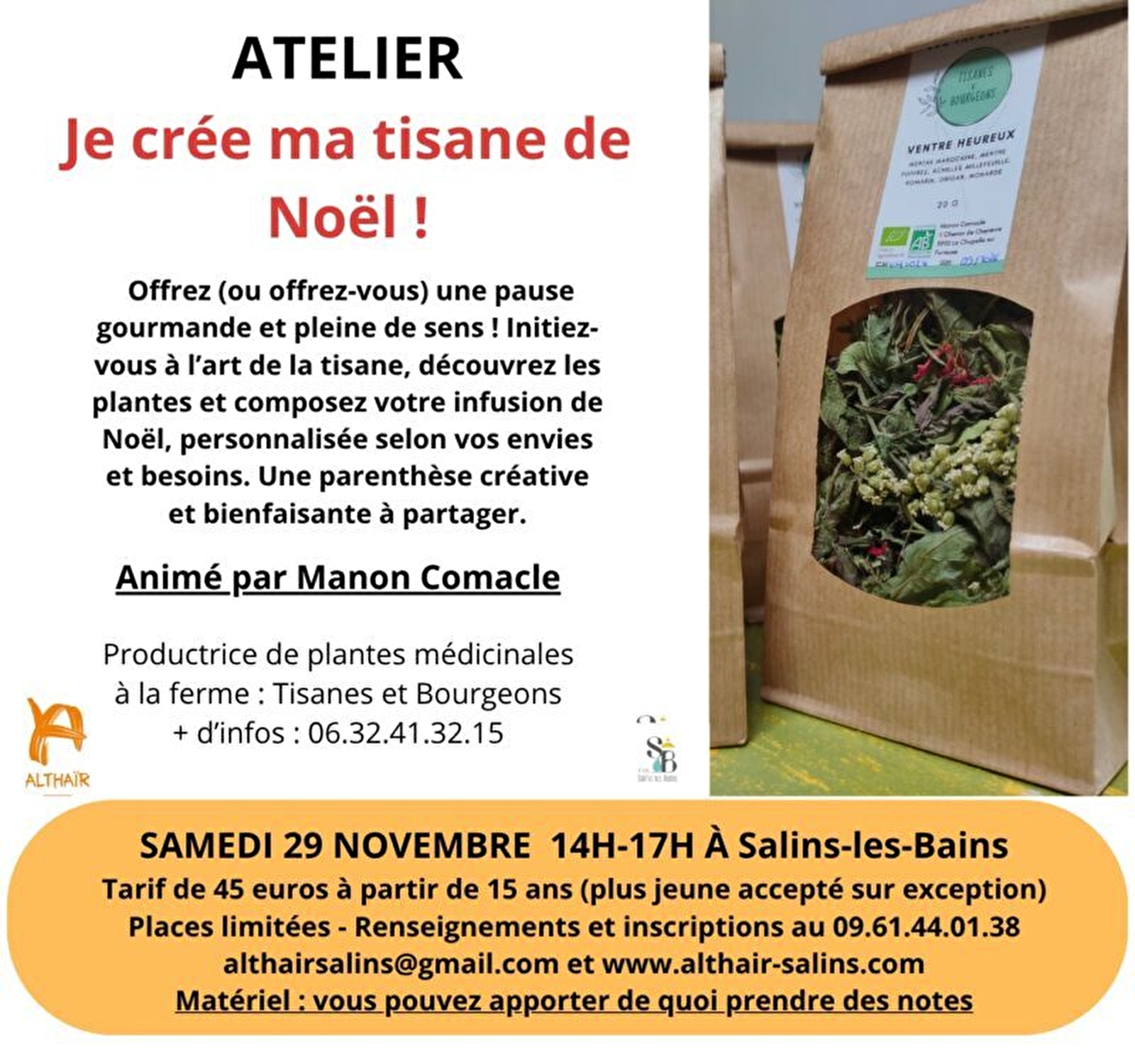 Treat yourself (or someone else) to a gourmet break full of meaning! Initiate yourself to the art of herbal tea, discover the plants and create your own Christmas infusion, personalised to your needs and desires. A creative and beneficial interlude to share.