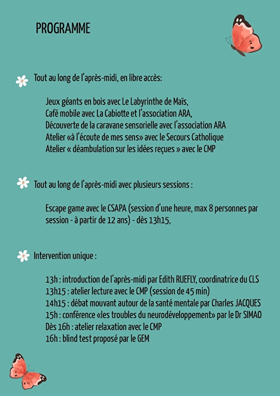 Mental health information day on Saturday 18 October from 1pm to 5pm.