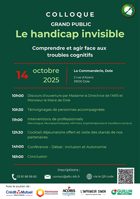 On Tuesday 14 October 2025, the Association des Familles de Traumatisés Crâniens (AFTC) de Bourgogne Franche-Comté is organising a regional conference at La Commanderie in Dole, from 9am to 4pm.