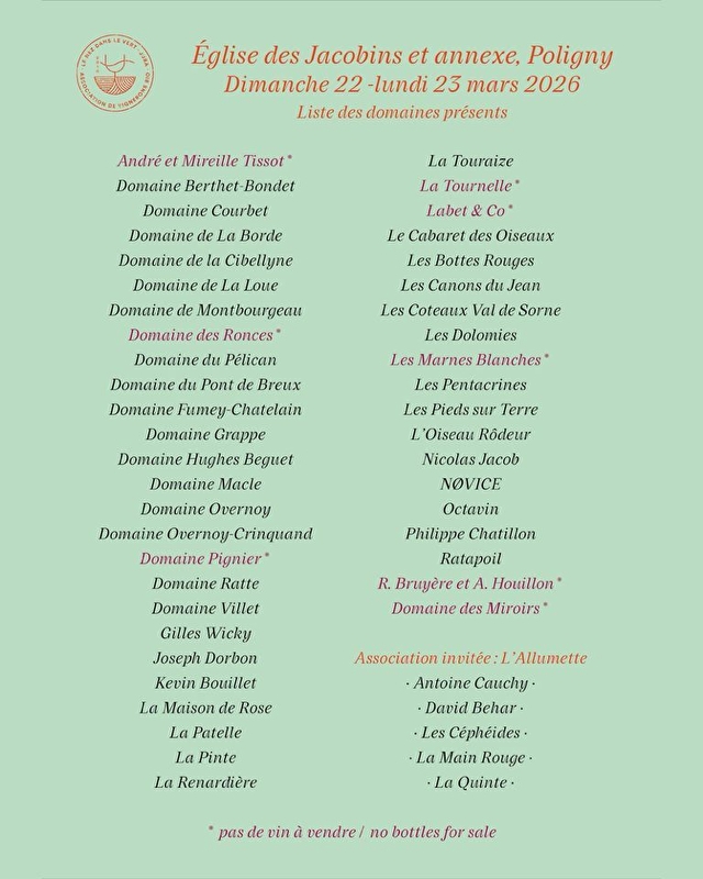 It gives wine-lovers the chance to taste a range of organic wines from the Jura, talk directly to the winemakers and buy their produce at the best prices in a magnificent setting in the heart of the Jura vineyards. Organic catering will be available on site.