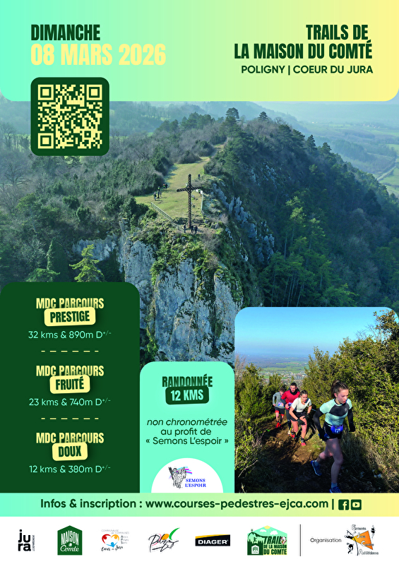 In 2026, the traditional Trail de Poligny is taking a new turn: it's moving to the Maison du Comté, a veritable showcase for the Jura region. Gone will be the Croix du Dan, replaced by the Trail de la Maison du Comté: a sporting, festive and gourmet event that combines authenticity and conviviality.