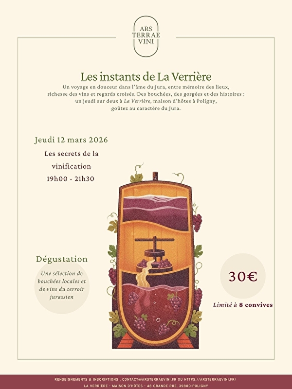 We're delighted to invite you to another edition of Instants de La Verrière, a sensory journey to the heart of the Jura. Between the memory of places and the richness of terroirs, we offer you a timeless interlude to taste the unique character of our region.