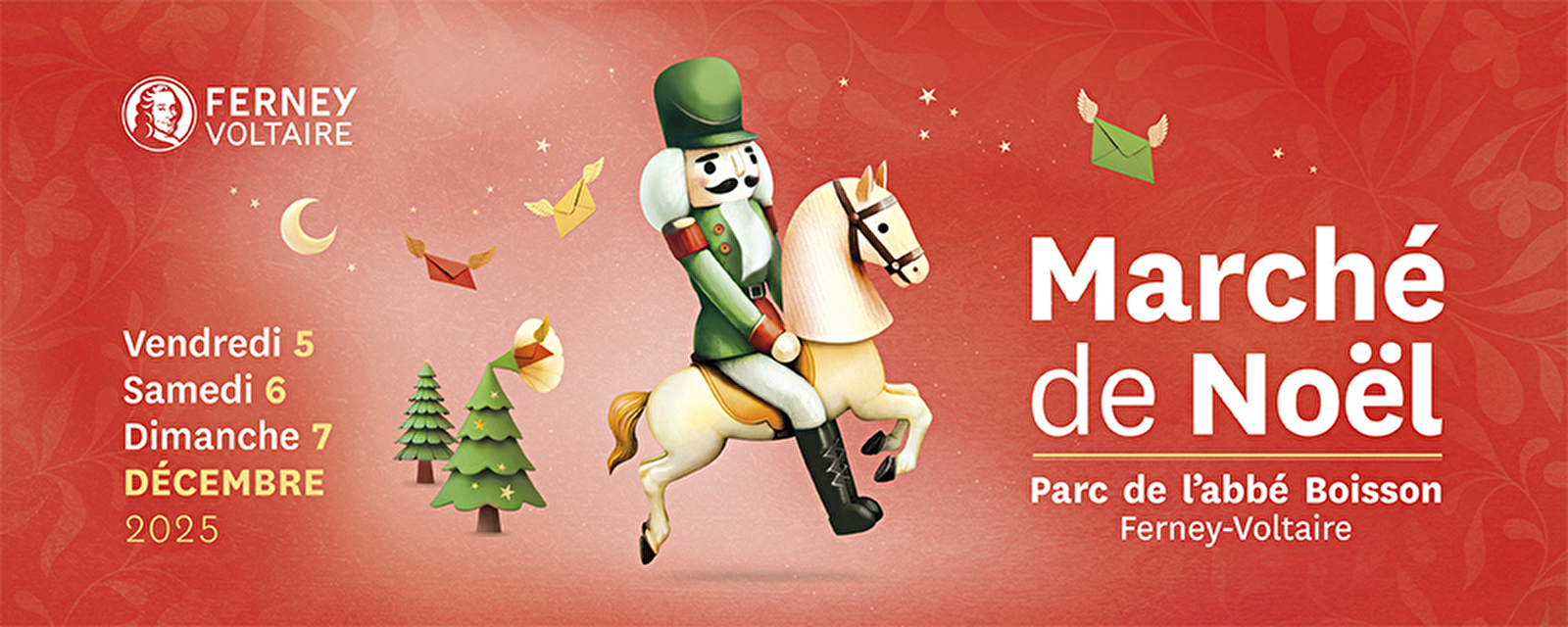 Visit from Father Christmas, magical lantern parade, fairground rides, horse-drawn carriage rides and donkey rides... enjoy some quality family time. On the programme: Friday 5 December events 5pm to 8pm: Visit from Father Christmas. 5.30pm: Opening ceremony attended by the Mayor of Ferney-Voltaire, followed by Christmas carols sung by the CP, CEl and CE2 classes from the Florian, Jean-Calas and Jean-de-La Fontaine schools. Conducted by Clément Coulez, music teacher at the conservatoire. 6 p.m.: Lantern parade through the streets, with Father Christmas and Noël Enchanté, a magical musical parade by the Les Enjoliveurs company. The parade will start at Place de la Comédie. 6.30 p.m.: Musical interlude with Noël Enchanté by the Les Enjoliveurs company. 7pm: Concert by the Ferney-Voltaire Music Society, conducted by Benoît Durand. 7.30pm to 8pm: Musical finale with Noël Enchanté by Les Enjoliveurs, combining music, song and circus arts. Saturday 6 December activities 10am to 11.30am: Christmas shortbread decoration workshop. Ages 6 and up. From 2pm to 3.30pm: Christmas card making workshop, offered by the Mouvement Artistique du Pays de Gex. From 3pm to 7pm: Visit from Father Christmas. From 4pm to 5pm: Craft workshop by the City's Children's Services. 4:30pm to 5:30pm and 6:30pm to 7:30pm: Live Christmas carols. All day: Horse-drawn carriage and donkey rides. Telethon evening