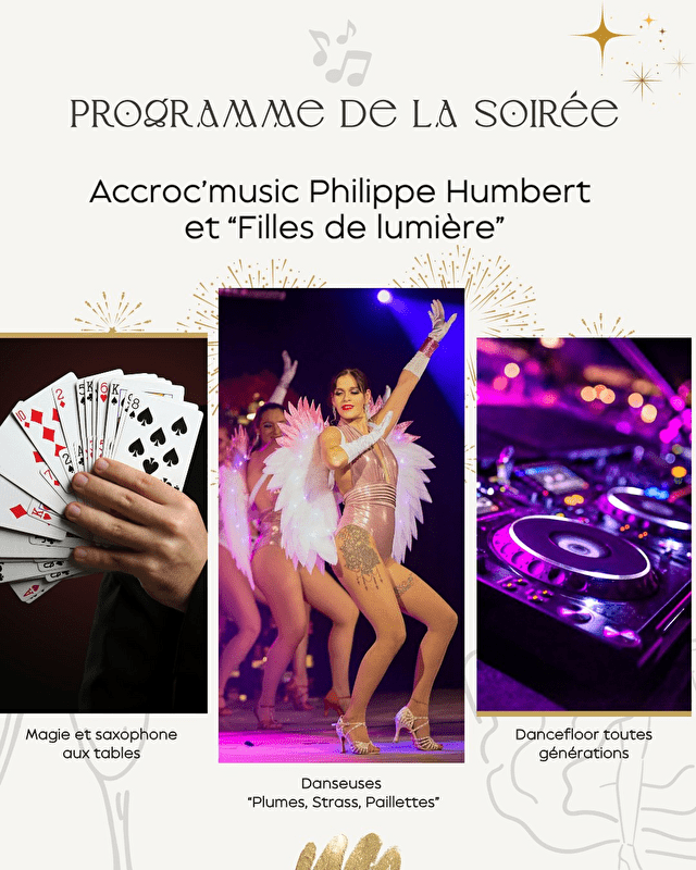 On the programme: magic and saxophone at the tables, "Plumes, strass, paillettes" dancers and a dancefloor for all generations.