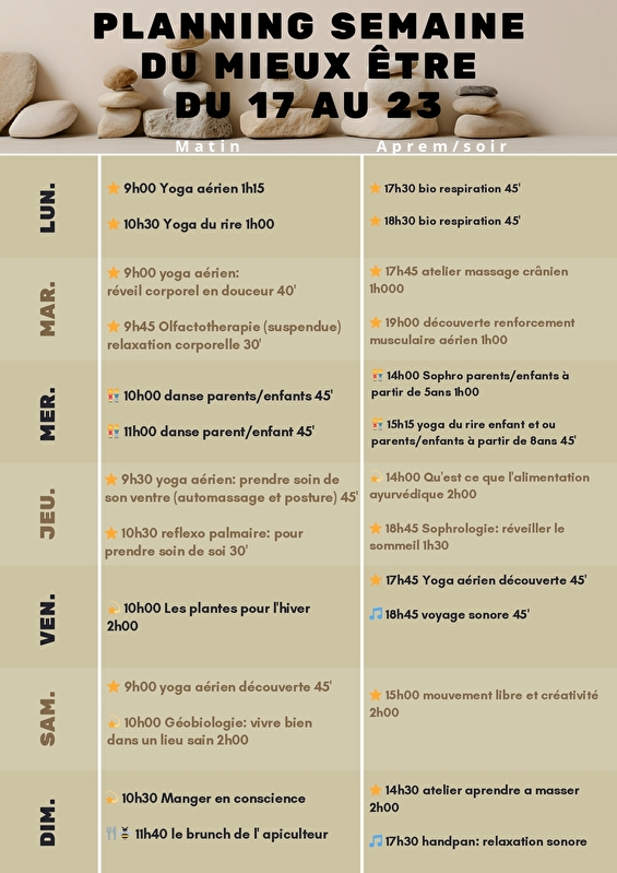 Born of the desire to offer you, in one place, the discovery of different approaches that are good for you, this week invites you to explore, experiment and take care of yourself, but above all to dare.