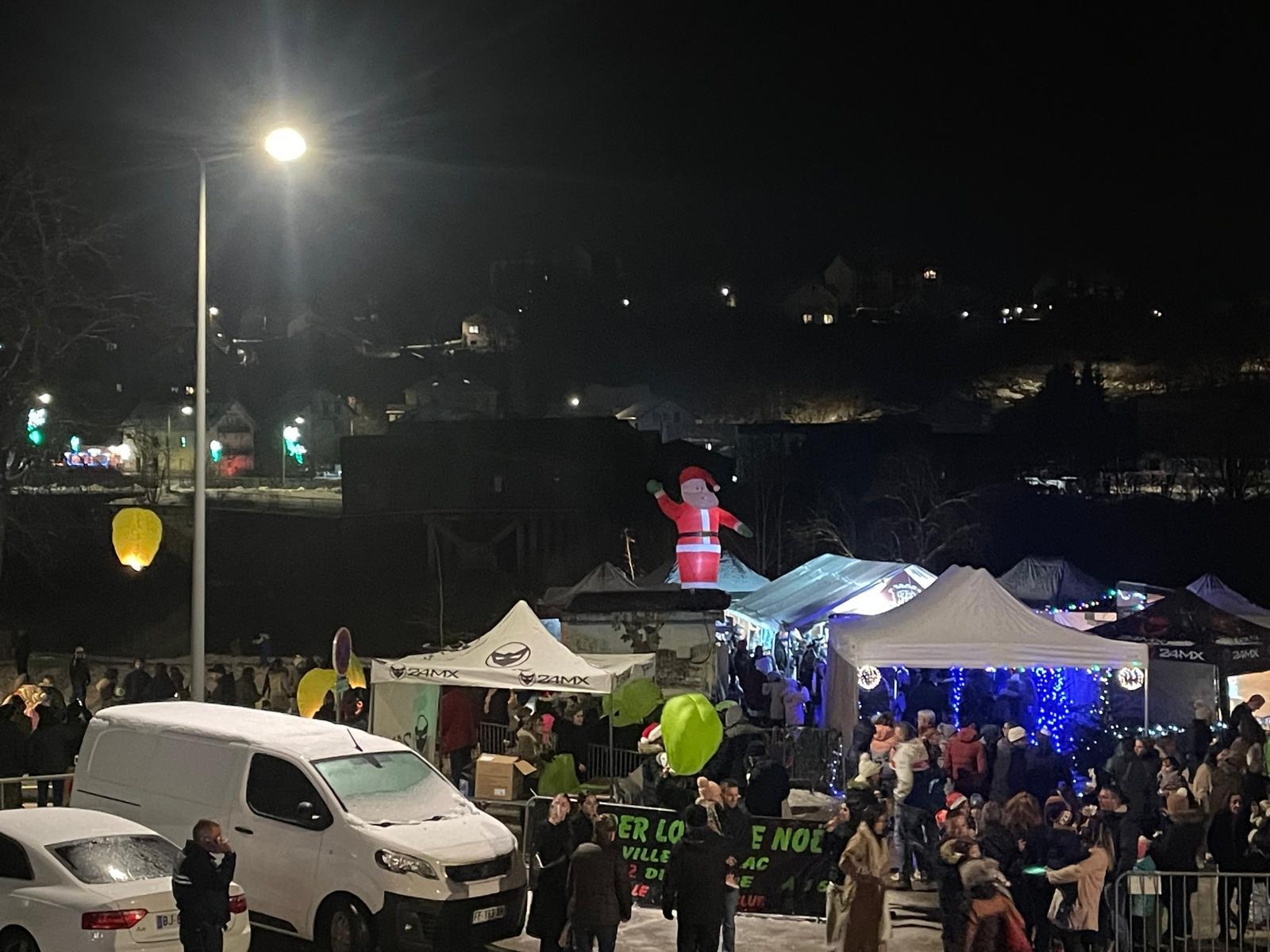 Christmas atmosphere with lights and Christmas trees. Lantern release on Friday with Father Christmas.