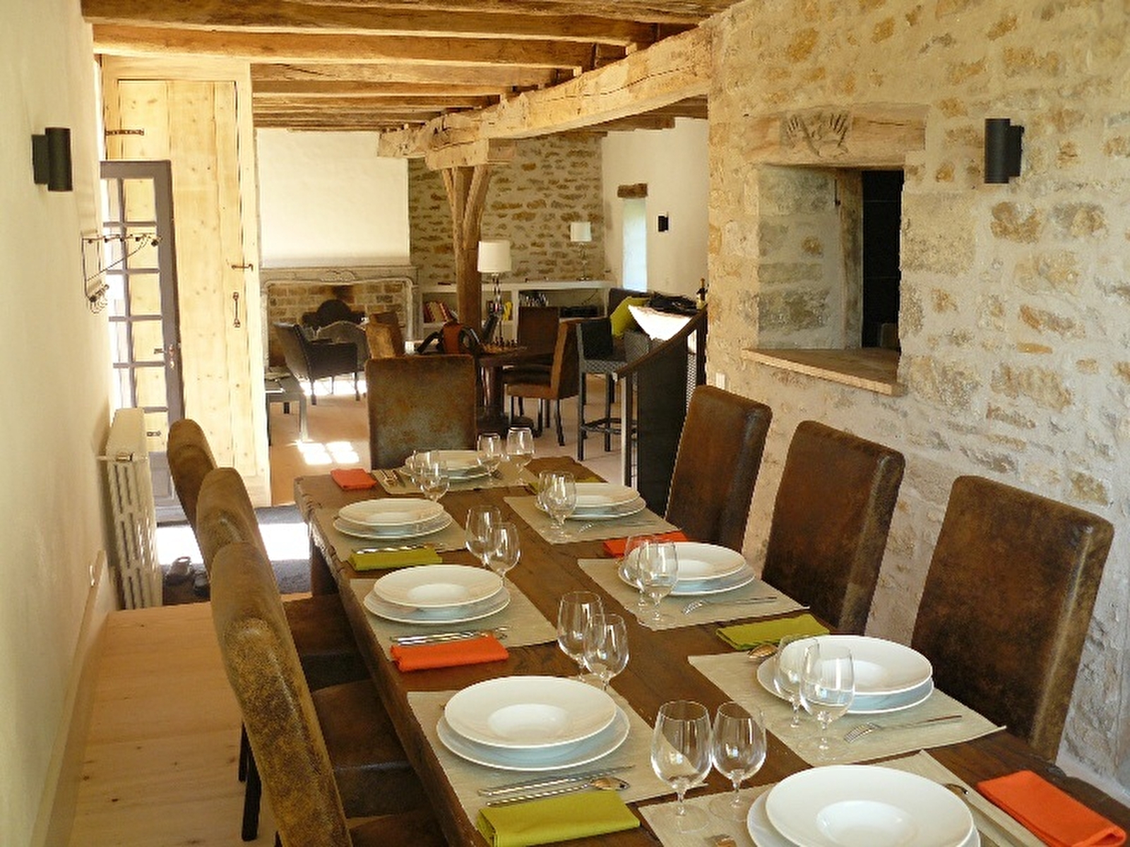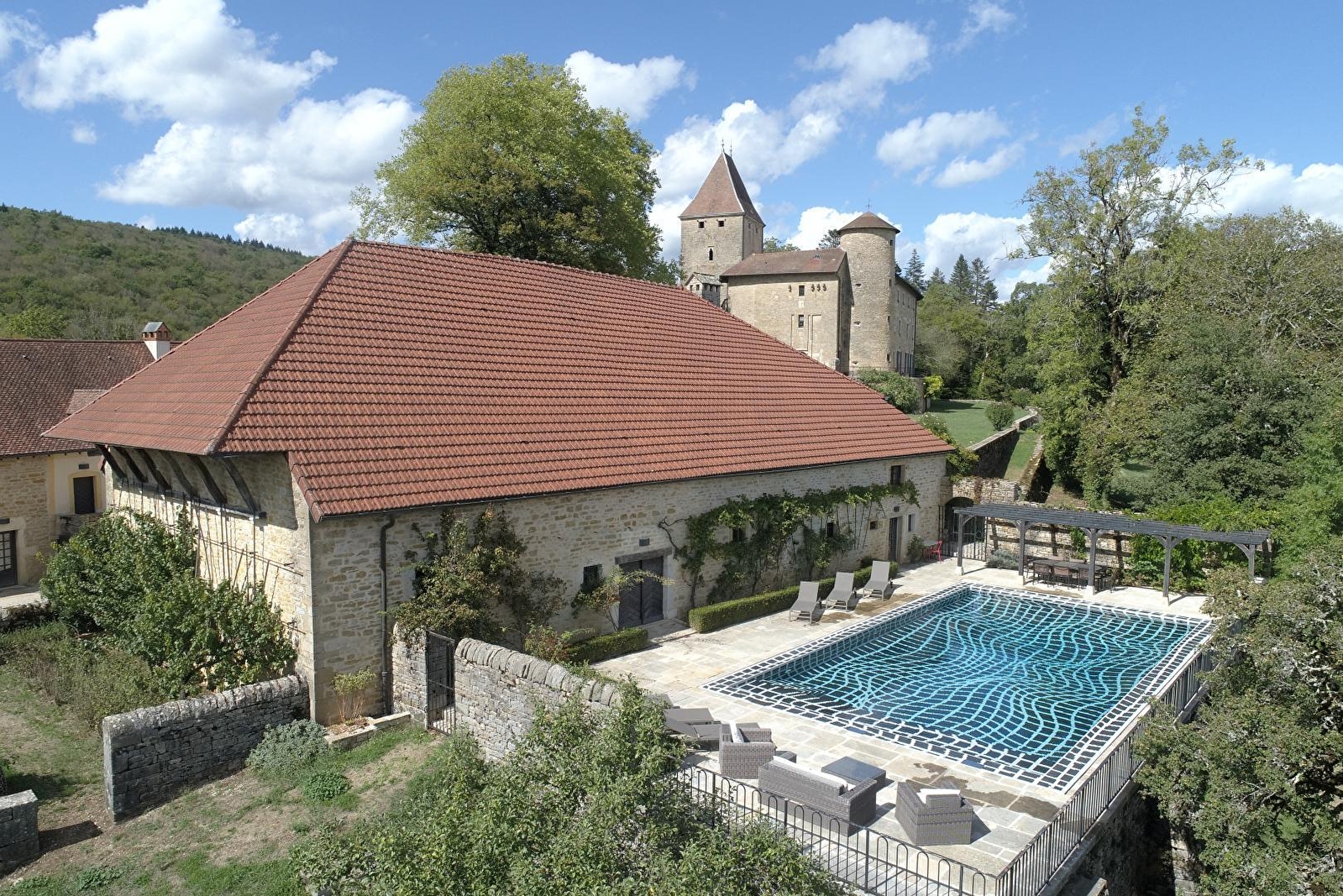 Group gîte for 15 to 19 people in the outbuildings of the château de Marigna-sur-Valouse. A total of 8 bedrooms (5 doubles, 1 triple and 1 quadruple), each with en-suite shower room and toilet. 12 hectares of grounds, private tennis court and swimming pool. Ideal for holidays or weekends with family or friends. Also available for private or professional events: weddings, birthdays, business meetings, themed courses, spiritual retreats, artists' residencies.