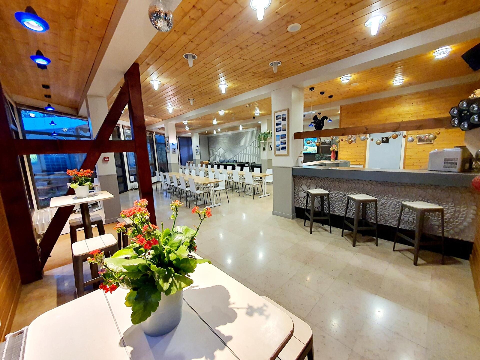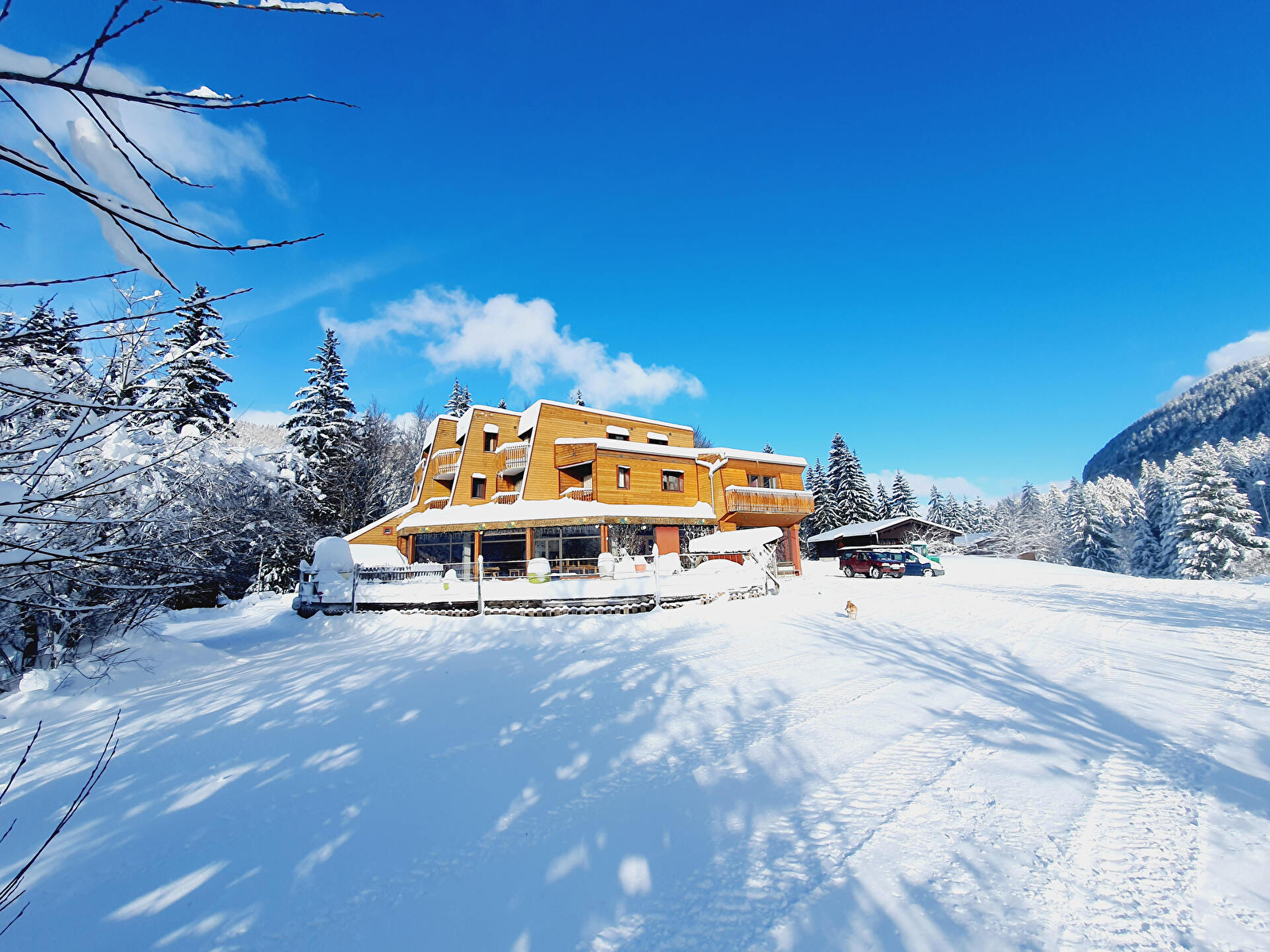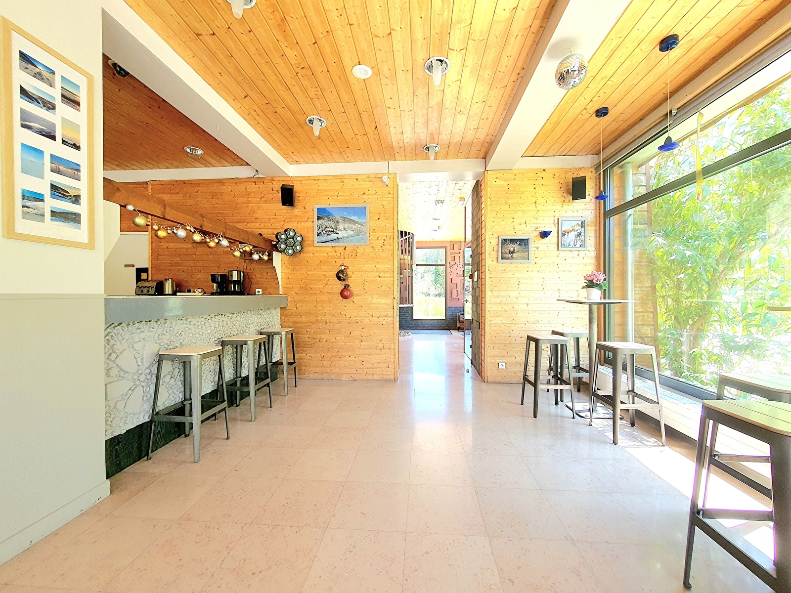 Our guests have access to 18 large rooms, including 6 with balconies, all of which overlook the mountains and forests of the Jura massif. The Gîte offers a range of different formulas, from self-catering rentals with private use of the gîte, to rooms offered on an overnight basis with breakfast and table d'hôte in the evening. The vast reception room on the first floor is the perfect place to gather for meals, play billiards or table soccer, or enjoy a drink at the bar or in the lounge in front of the fireplace. The fully-equipped professional kitchen offers a wealth of possibilities for preparing unforgettable dining experiences, which continue on the large terrace with its Barnum set up from spring to autumn, where BBQs and aperitifs are a regular feature during the summer months. Our sauna is much appreciated by our sporty guests who want to enjoy a moment of comfort after physical exertion, or who simply want to relax.