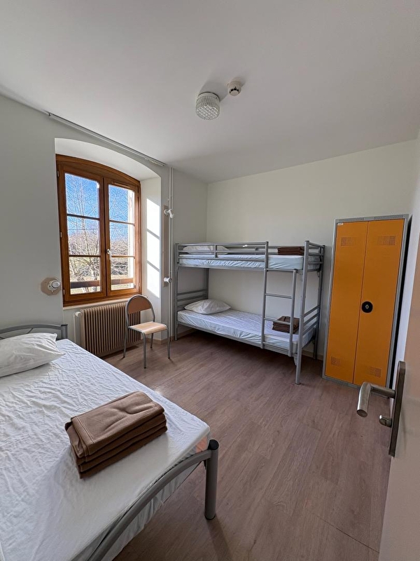 Situated in the heart of the Bresse lakes, this 36-person gîte is housed in the village's former railway station and enjoys a peaceful, leafy setting. Completely renovated, the ground floor has a large dining room, a fully-equipped kitchen and a bedroom for people with reduced mobility. Rooms with private and shared bathroom facilities are on the 1st and 2nd floors. It is also the starting point for a number of hiking, interpretation and mountain bike trails. Ideal for rest, rejuvenation and relaxation, with family or friends. Self-catering only.