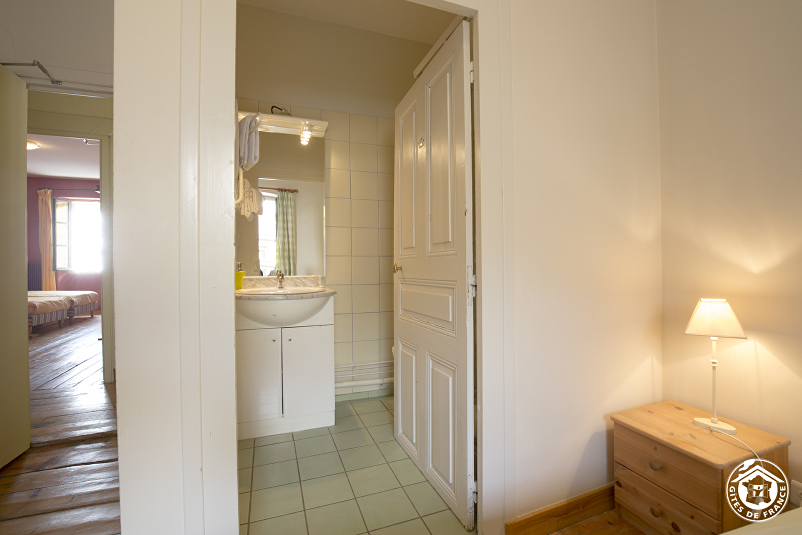 The second floor offers a spacious living room with kitchenette and sitting area, ideal for relaxing after a day of adventures. On the second floor, you'll find four quality bedrooms, each with a full en-suite bathroom (WC, shower, washbasin). The bedrooms vary, with one double, three large rooms each offering two distinct spaces (one with four single beds, two others with a bunk bed and three single beds).