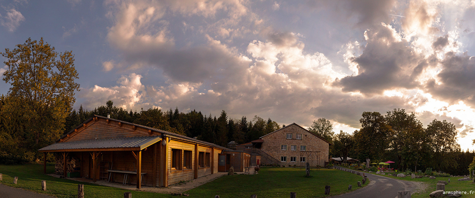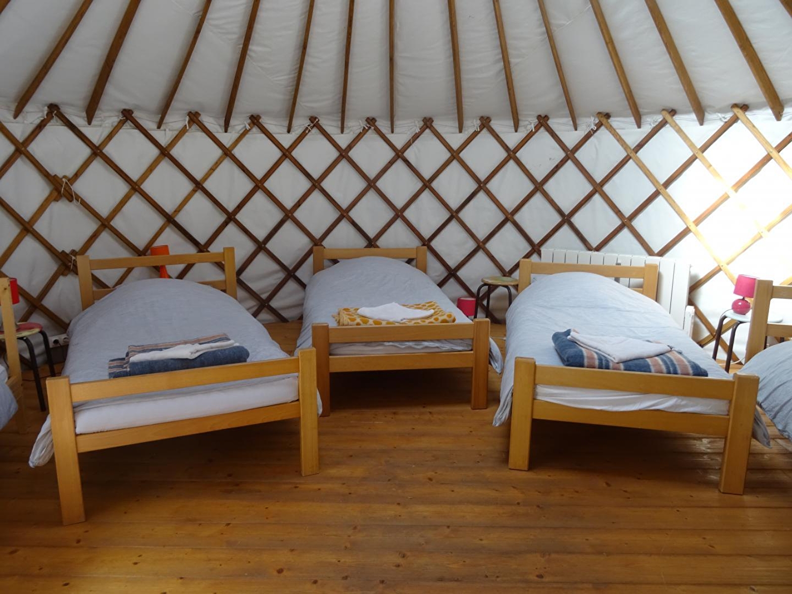 3 wood tepees (12 people) and 3 heated yurts (13 people) including 1 accessible PMR, 1 unheated tipi (8 people) from May to October, which fit perfectly in this natural setting. In the main building, living room (fireplace), relaxation area, sanitary and collective toilets. Three seminar rooms and rejuvenation, a massage and wellness area on site. Yoga and meditations. Meal on reservation. Additional sleeping arrangements in group gîte (48 persons). Hiking, mountain biking, hiking in the forest, snowshoeing in winter.