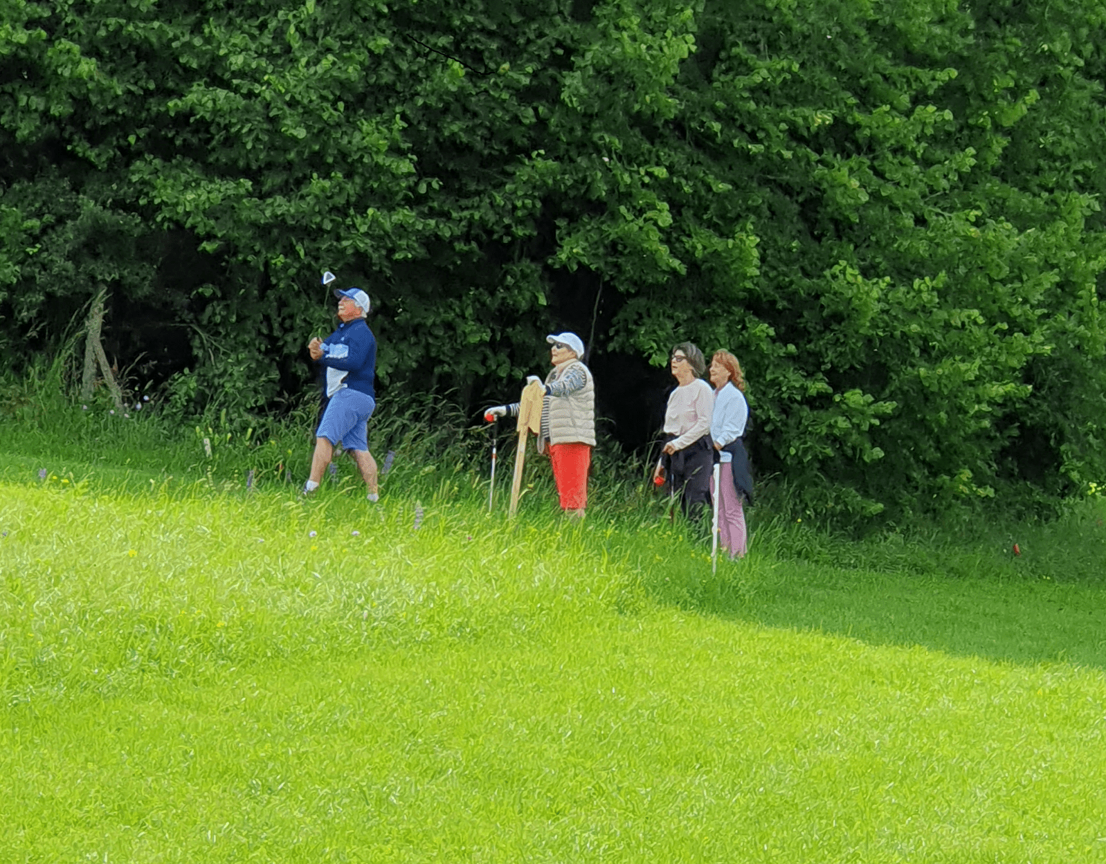 For swin, the starting lines on the teeing grounds are marked by white, blue and red cobblestones. The distance to the holes is shown on the sign bearing the hole number. Each player chooses his or her starting line according to his or her ability.