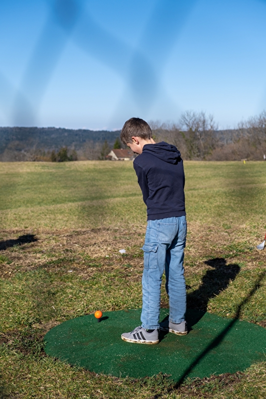 The course is laid out on pastoral mid-mountain terrain, retaining its natural topology. The course is 1,200m long, with 9 successive playing areas ranging in length from 70m to 240m. Each ends in a flag area with a hole for swin marked by a white flag.