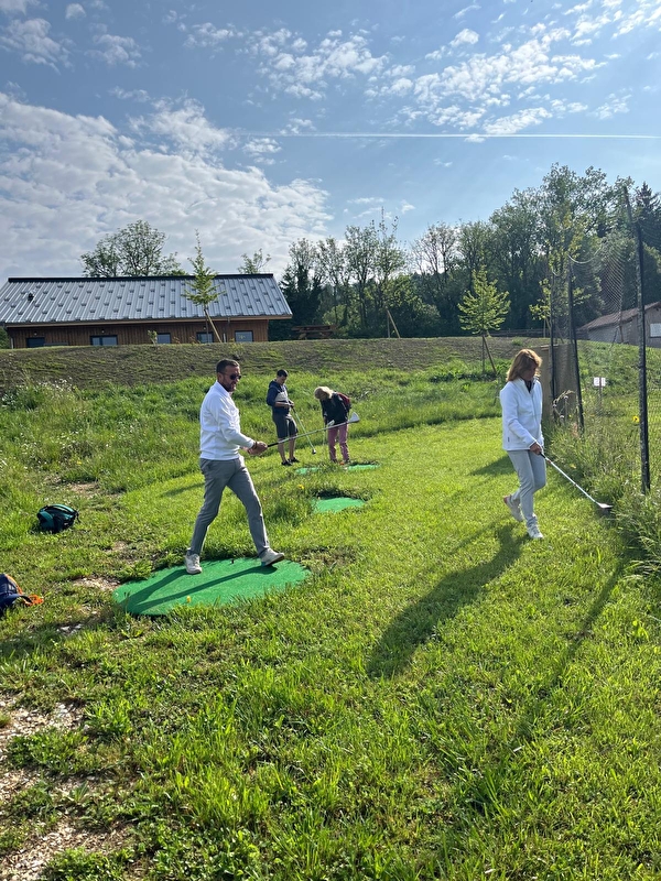 Swin golf applies the same rules as golf, but uses a larger, less dangerous ball.