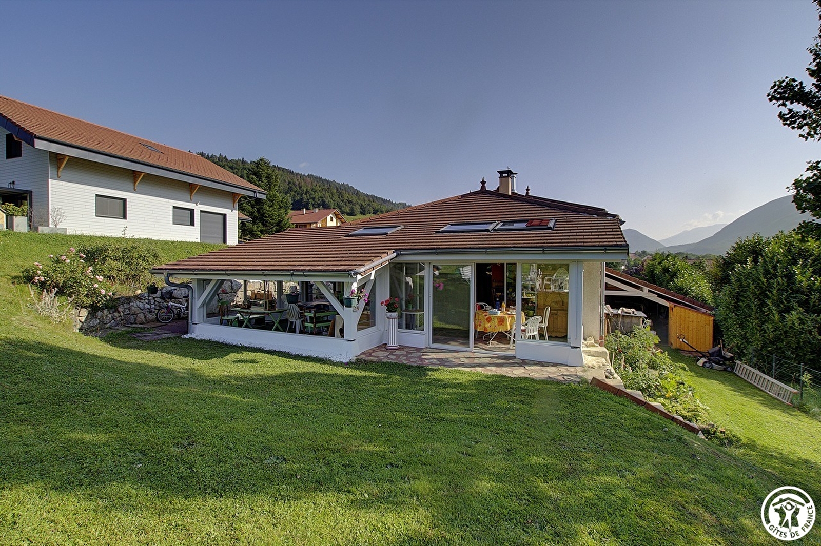 Located on the 1st floor of the owner's house. Le Mont des Anges Calmes comprises a bedroom with a 140*190 bed and a small adjoining bedroom with an 80*190 bed and study area. The bathroom with shower-bath and WC is accessible from the same corridor. On the ground floor of this house, you'll find plenty of space for rest and relaxation: the living room with its wood-burning stove, the small veranda and garden for breakfast in summer, or the table d'hôtes (non-alcoholic) in the evening (for children, reduced rates). Jacqueline will be happy to prepare a packed lunch to suit your needs. A stopover to discover the Jura massif, bordered by rivers and natural landscapes, to recharge your batteries or relax. Hiking trails are nearby, as is the Menthières ski resort for skiers. Places to visit: lakes (Genin and Nantua), Aix les Bains, Annecy.