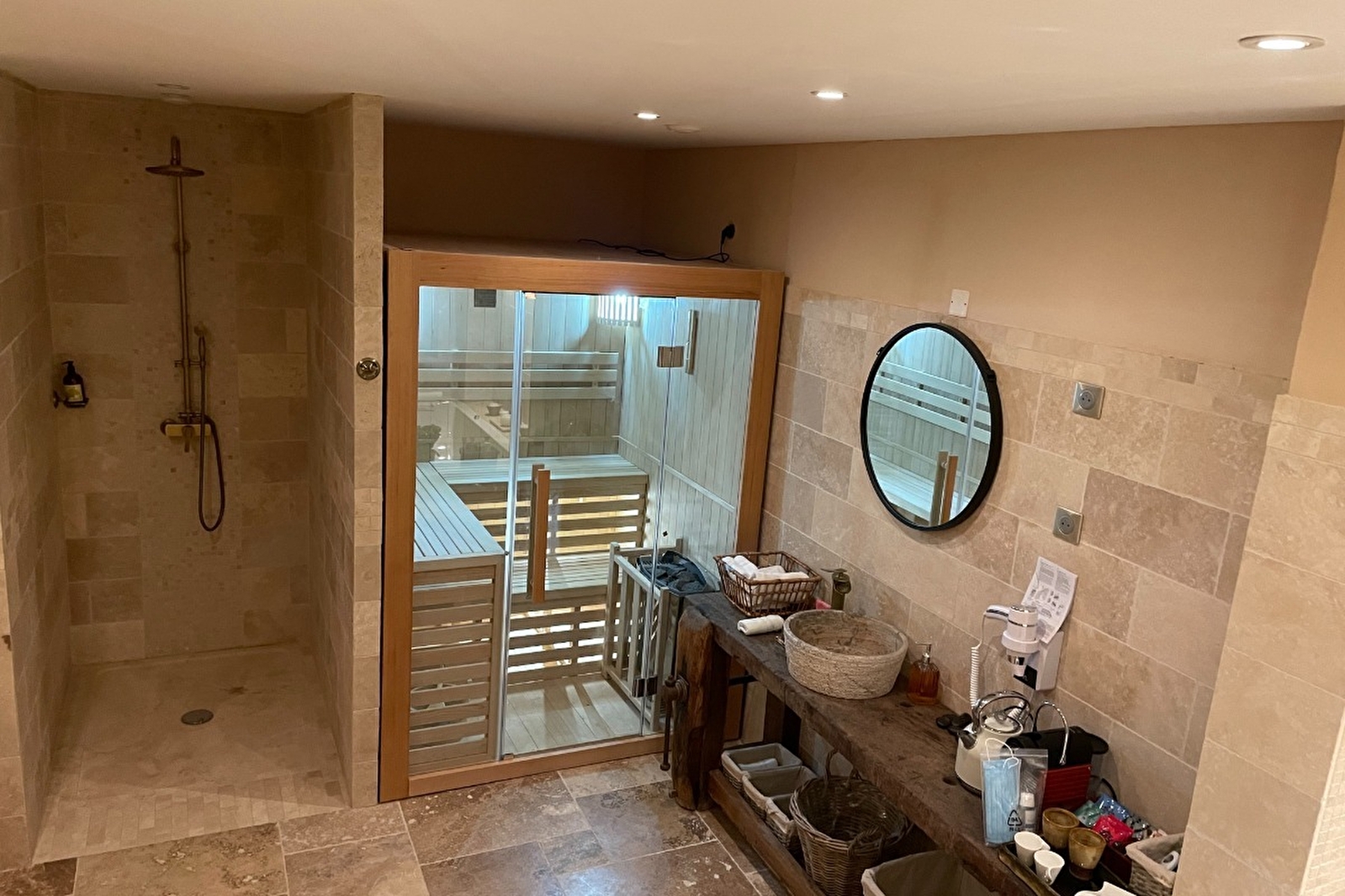 Combine the benefits of color with chromotherapy to create pleasant lighting effects. A sauna session is a moment of relaxation for body and mind. The benefits lie in the extreme temperature to which the body is subjected, and the alternating hot and cold. Bathrobes and slippers are provided free of charge, as is a tea and coffee bar. Breakfast is included.