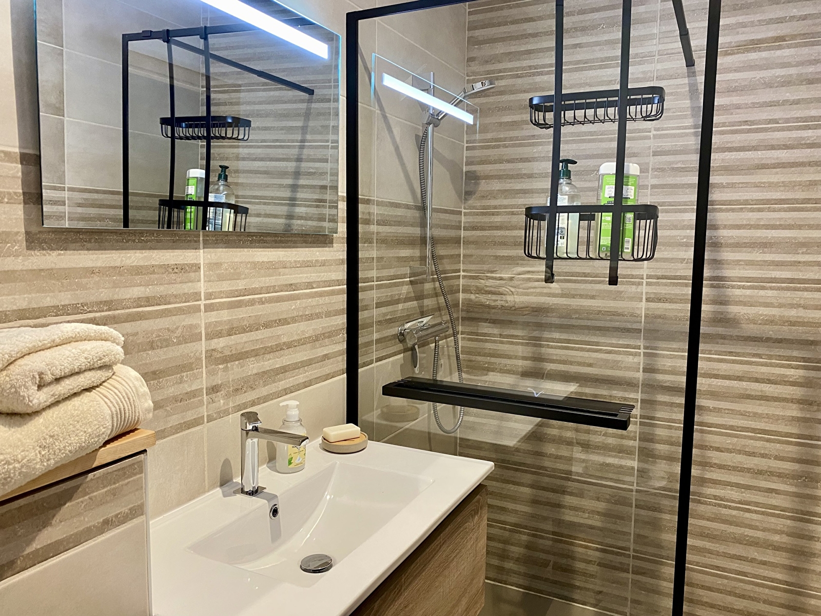 The private bathroom includes a shower, washbasin and toilet.