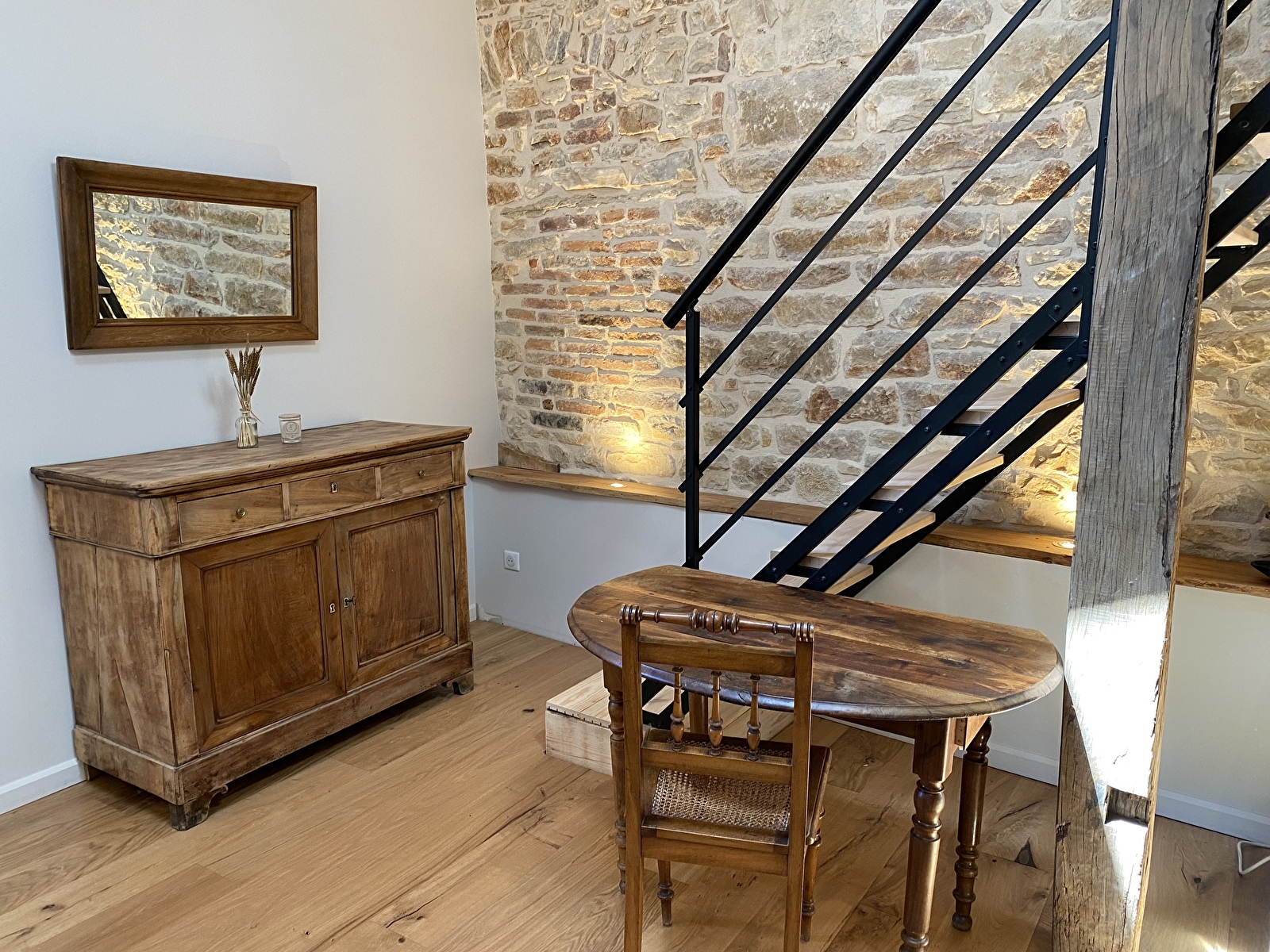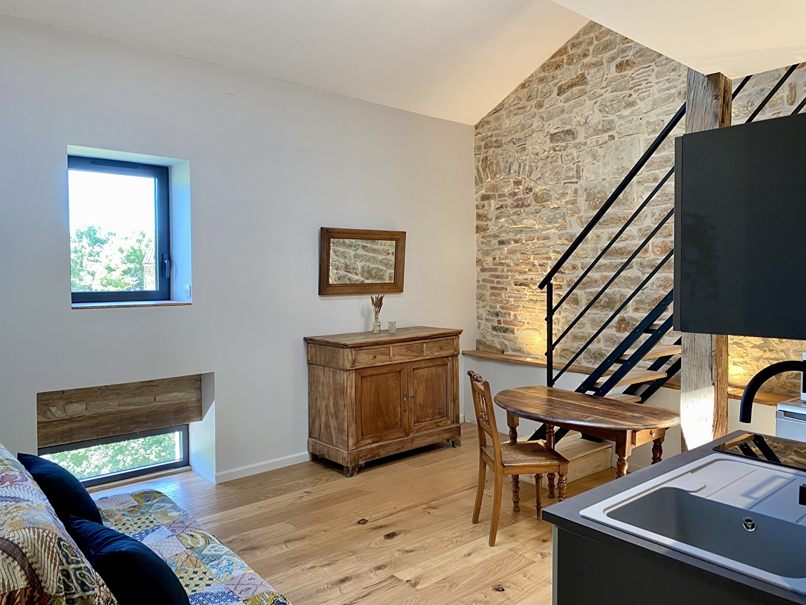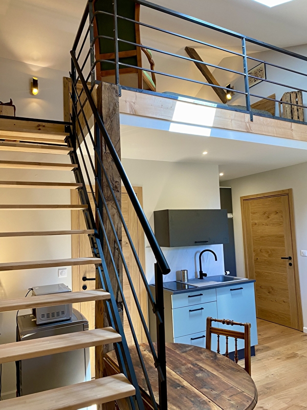 Welcome to your cozy studio on the second floor of a renovated barn, combining authenticity and modern comfort. Access is via the main staircase just opposite our front door.