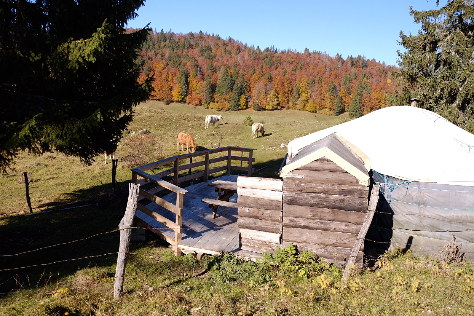 Situated in the Hautes-Combes in the Jura, the Guienette inn welcomes you in summer and winter in a protected natural environment. We offer half-board or full-board accommodation in a real Mongolian yurt! From La Guienette, you'll have access to cross-country skiing, snowshoeing and hiking trails... When it comes to food, we offer generous gourmet fare, prepared with fresh local produce.