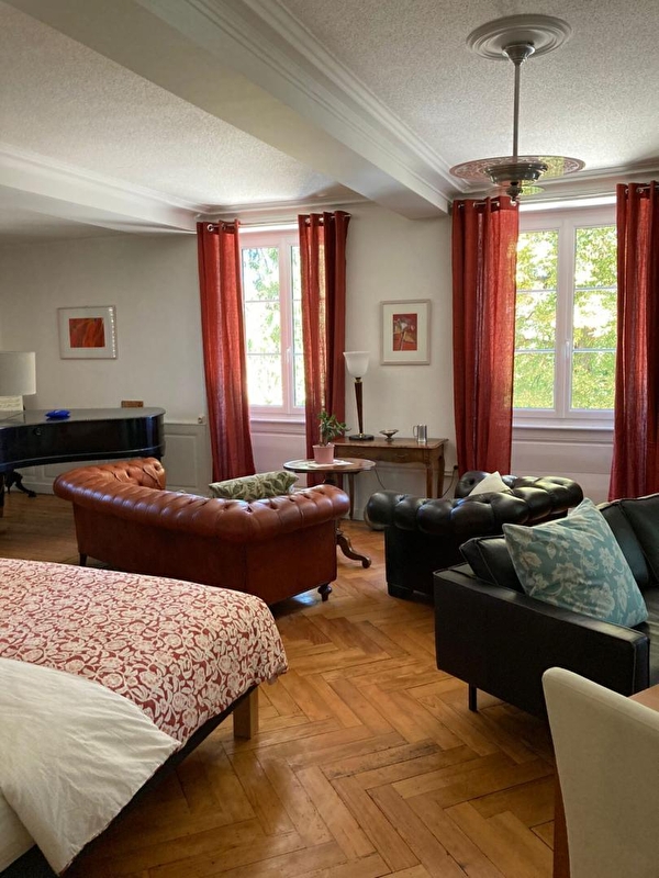 This 18th century manor house with its park and outbuildings is located in the centre of this pretty, quiet village in the north of the Jura, on the border with Burgundy. The main house offers 2 suites and a bedroom that take you back in time. Two gîtes are located in the garden with its century-old trees, an orchard, a small river that crosses the estate and a 19th century pond, which hides the remains of a Roman "villa". This "villa" gave its name to the old winegrowing village at the foot of Mont Guérin. During a hike you can still discover the remains of the Celts who lived there as early as 3500 B.C. A little further on, by bike, you can discover the valley of the Ognon, Pesmes - one of the most beautiful villages in France. Or you may prefer to drive to the historic towns of Dole, Dijon, Beaune, Besançon, and the vineyards of Burgundy and the Jura, which are three quarters of an hour away. Back at the estate, the hosts will be happy to show you these exceptional wines, also through a visit to the vaulted cellar.