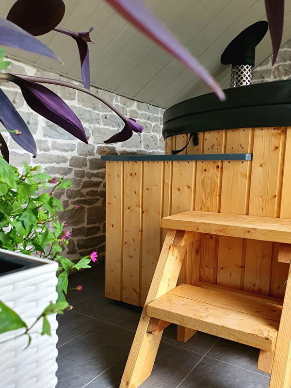 Guests have access to a flower garden, a private terrace and a wood-heated Nordic bath (optional). Breakfast includes fresh, local, home-made produce. A table d'hôtes is also available on reservation, offering seasonal cuisine from the kitchen garden or neighbouring farms.