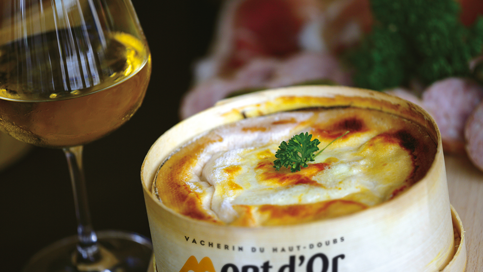 Baked Mont d'Or cheese, or "boite chaude", is perfect for warming up on a winter evening. This hearty dish of charcuterie, melted cheese and Jura wine is just as simple to prepare as a traditional comté cheese fondue. A delight made for sharing. To really do justice to this cheese and its origins, the Jura Mountains invite you to come and enjoy your Mont d'Or cheese... at the top of Mont d'Or, 1,463 metres above sea level! And while you're in the area, why not visit one of the local cheese dairies to find out how this and other cheeses are made through traditional methods?