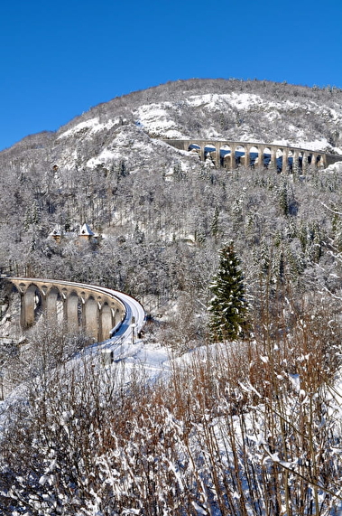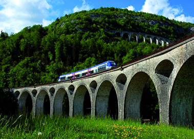 Hop aboard one of France's most impressive railway lines: the Ligne des Hirondelles! This hundred-year-old railroad crosses through the Jura Mountains, from Dole to Saint-Claude.