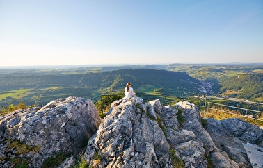 Vue 360° sur la reculée, les forts, les plateaux jurassiens et même le Mont-Blanc par temps très clair.