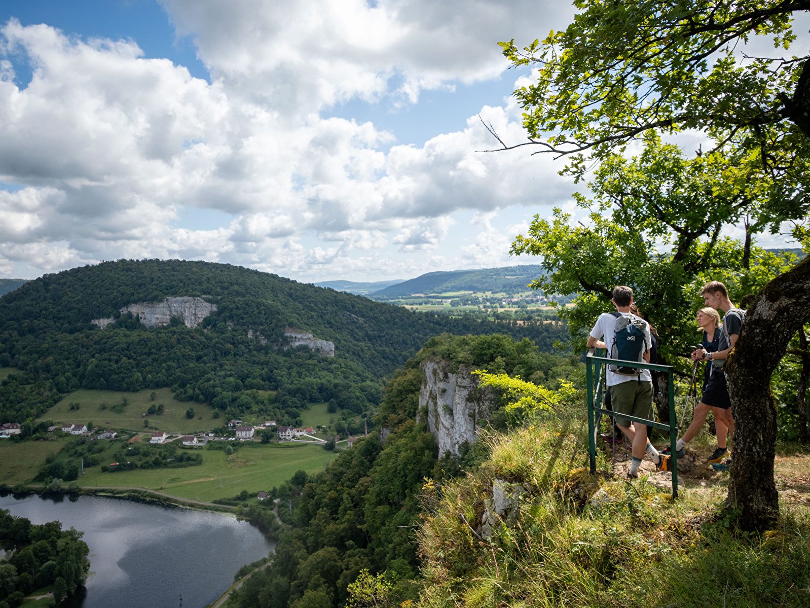 A route along the water's edge and over the ridges with the viewpoint of the Croix de Châtard. From here, you can see the old Ropp pipe factory, the old village of Cour, Baume and its hills... The Doubs flows below, between the Fente de Babre and the rocks of Sous-Buen, forming the Gondé basin.