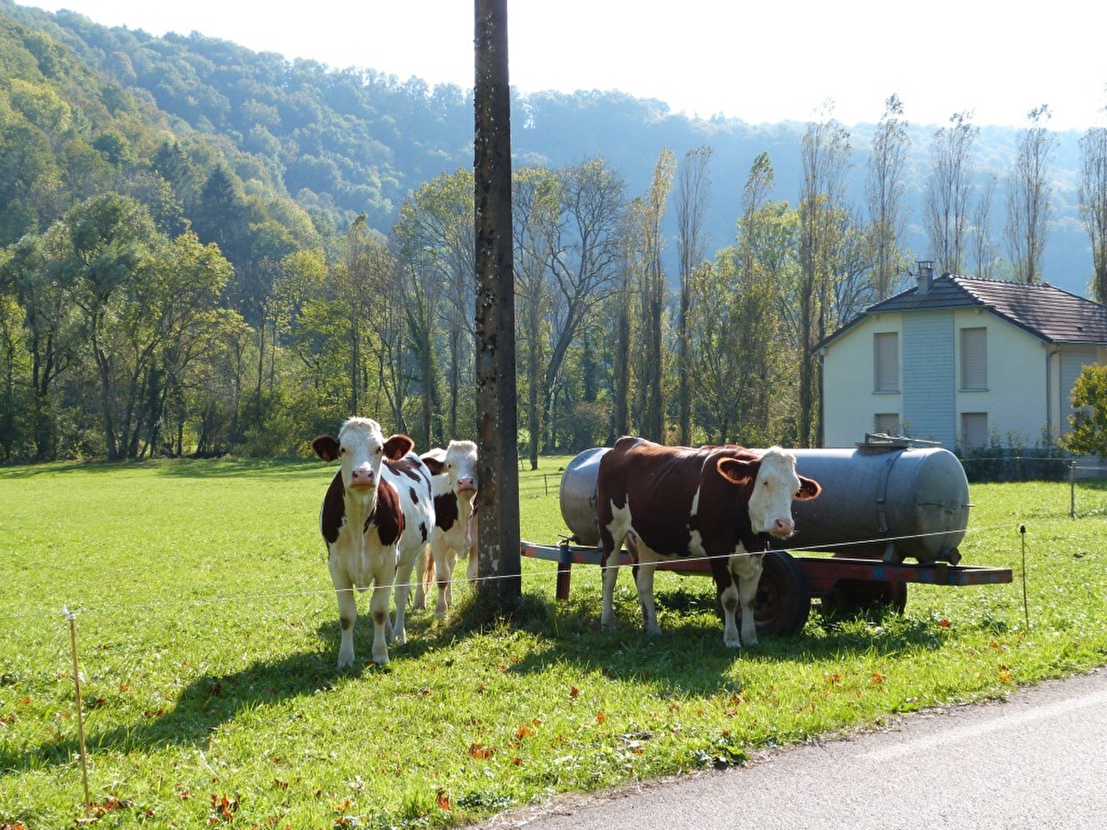 Further along on the right, the yellow and blue markings invite you to take a path through the forest (if you have a pushchair, stay on the road). The path comes out onto the road. Turn right. Pass the first farmhouse and continue to the second. Enjoy the view over the Cusancin valley, which is unobstructed all year round.
