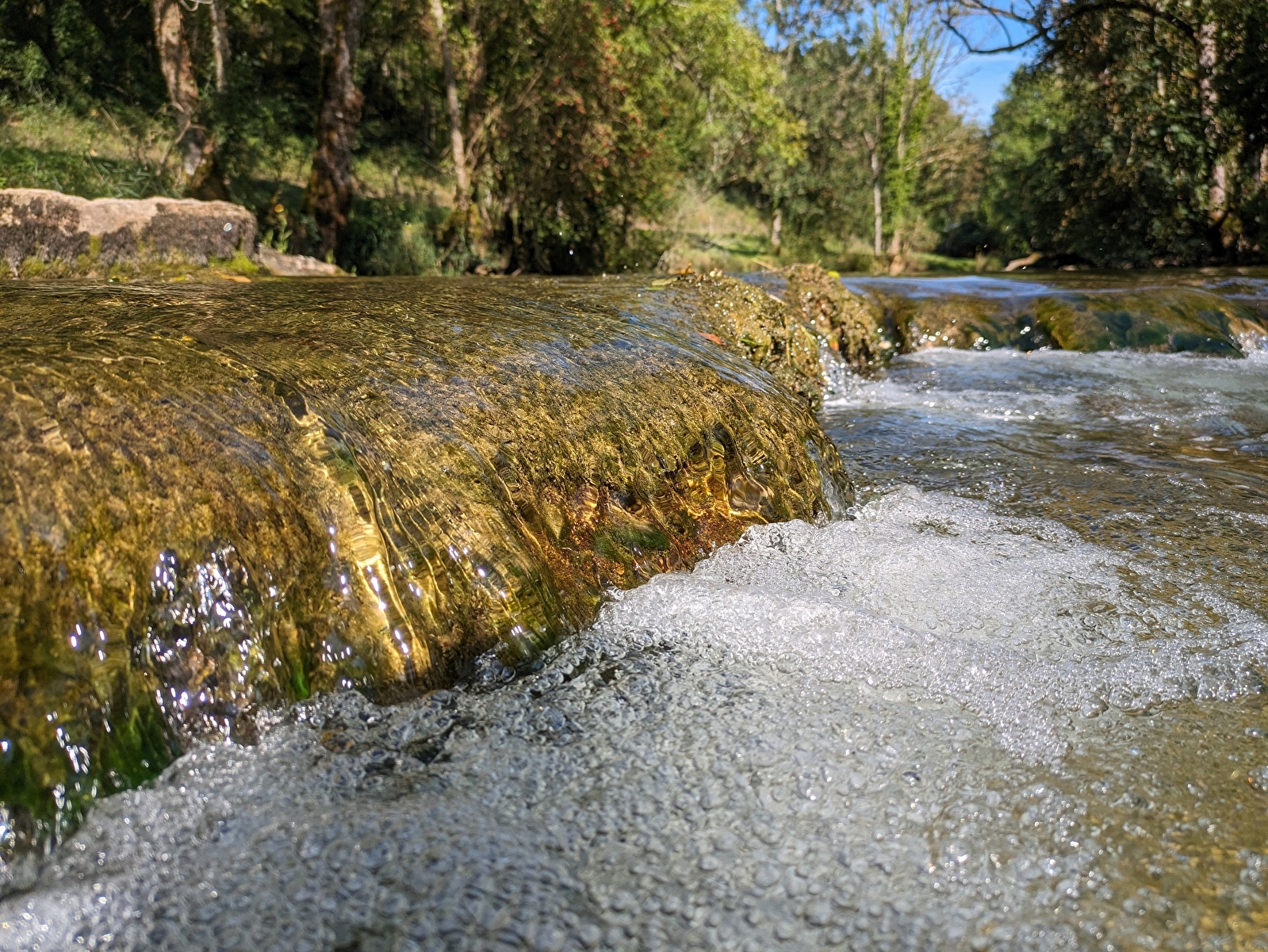From here, take the path behind the telephone relay station and follow the yellow and blue markings. The stony path takes you back to the village of Guillon-les-Bains. As you descend, you can make out the old thermal baths below the path. Cross the pretty village of Guillon-les-Bains to reach the picnic area.