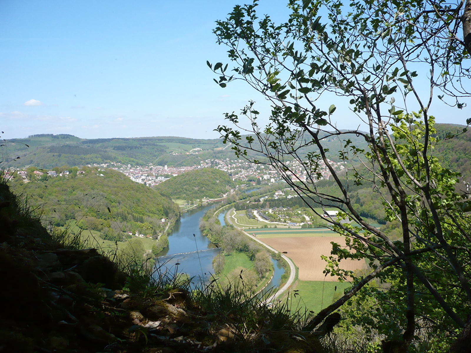 Stage 6: You arrive at a viewpoint overlooking the Doubs valley and Baume-les-Dames. Continue along the stony path. You'll find other viewpoints here and there (but not developed).