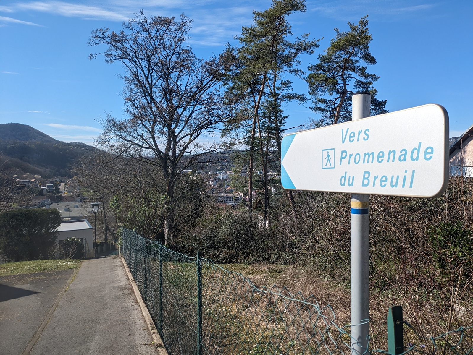 STEP 5 :Further down on the left, follow the signs for "Promenade du Breuil". Go down a flight of steps which becomes a fairly steep street. After the bend, turn right. At the junction, turn right.